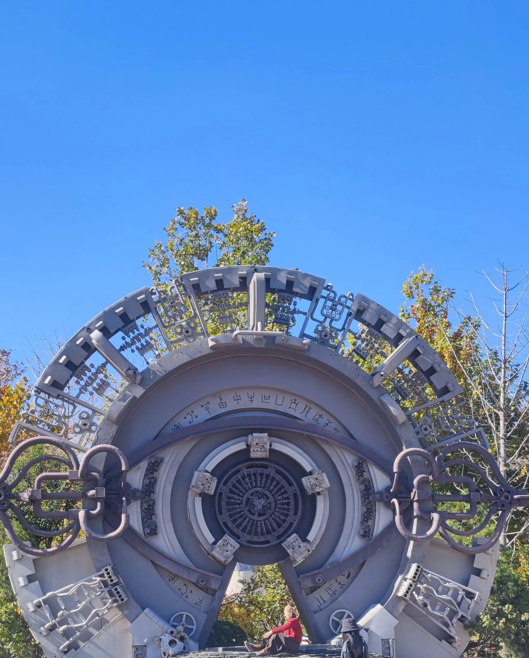 酒庄虽然规模不算庞大,但设计独特,处处都是拍照的好地方。刚到大门口,映入眼帘的是一个酷炫的机械之眼,几乎每位游客都忍不住驻足拍照。走进酒庄,首先看到的就是一个像鸟巢的红色铁架建筑,爬上旁边的楼梯,俯瞰下去,竟然能看到一个心形的图案,站在里面拍照,效果绝对出彩。