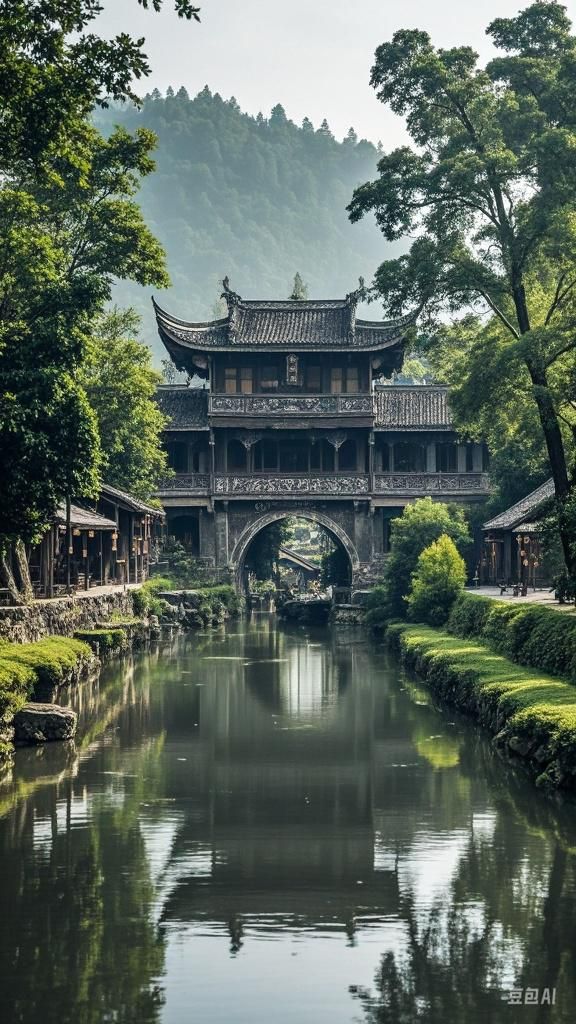 - 古镇的水来自西岭雪山的出阝江河水,经分流后从头堰河、二堰河、三堰河穿镇而过,形成“小桥流水人家”的美景.