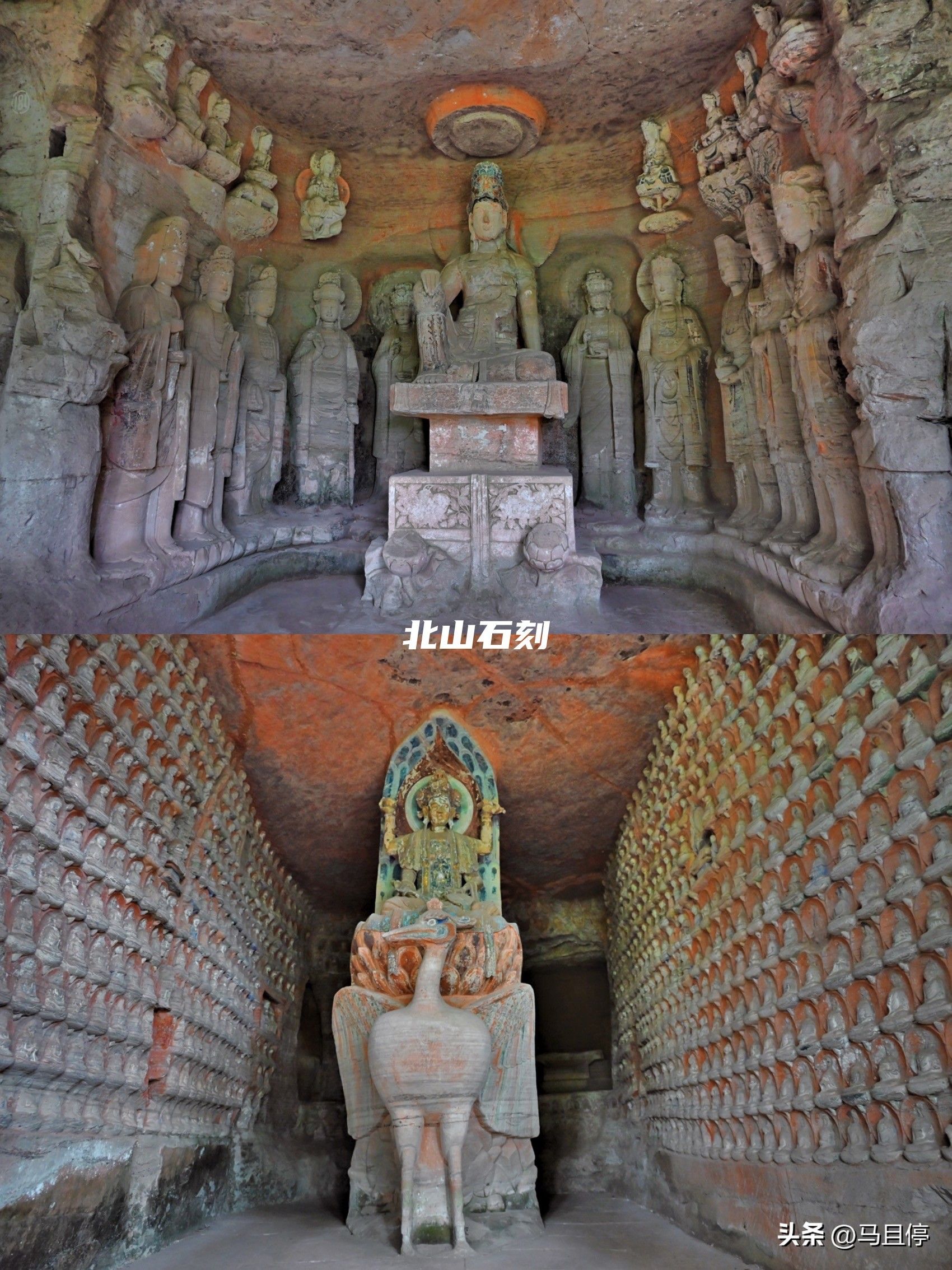 看什么:北山石刻造像近万尊,主要是当时民间祈佛出资雕刻,题材方面主要为佛教密宗为主,占据了其中的一半,当然也夹杂了一些儒家和道教的造像。