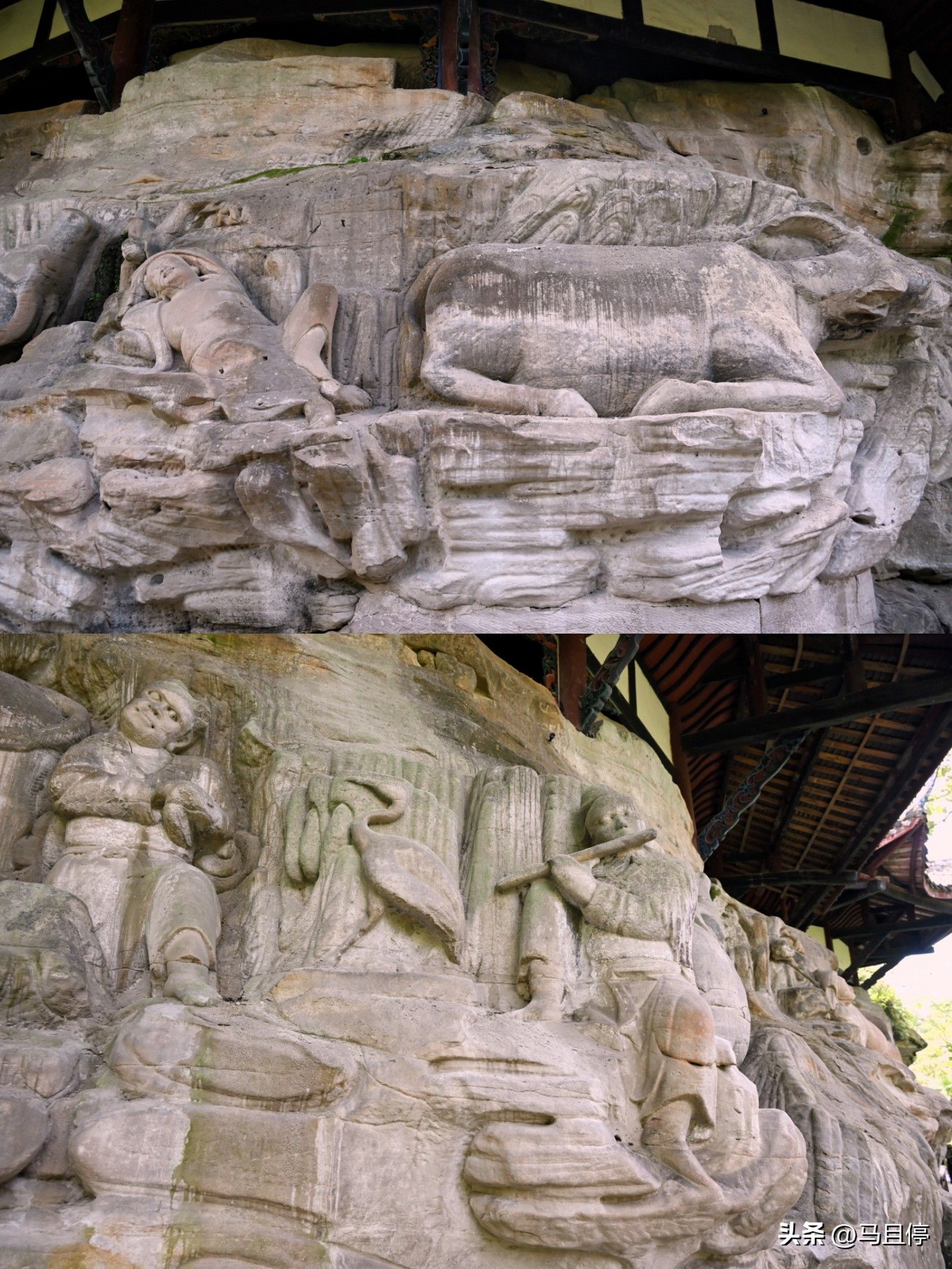 极具巴蜀石刻世俗气息的《佛说父母恩重经》;奇特造型的六道轮回;圆觉洞内造型各异的圆觉菩萨造像等。