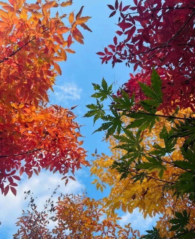 关于拍照的小技巧,有两个建议。一个是拍照的时间最好选在早上8点到10点,或者是下午3点到5点之间,这两个时段的光线比较柔和,能拍出好看的光影效果。另一个是在拍照时尝试逆光拍摄,这样阳光透过枫叶,会使叶子看起来更加透明,颜色更加鲜艳。如果是用相机拍照的话,建议用50mm以上的镜头,长焦可以帮助压缩景深,大光圈可以让背景模糊,突出主题。手机用户可以试试开启人像模式,也能达到类似的效果。此外,拍照时可以用不同颜色的枫叶作为前景,这样能让画面更有层次感。