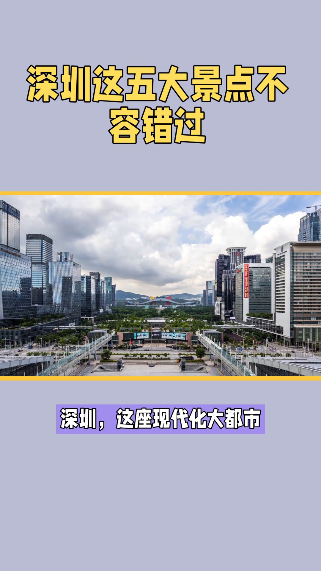 这五大景点各具特色,无论你是想亲近自然、体验文化,还是寻找刺激和放松,深圳都能满足你的需求。快来亲身体验这座城市的魅力!