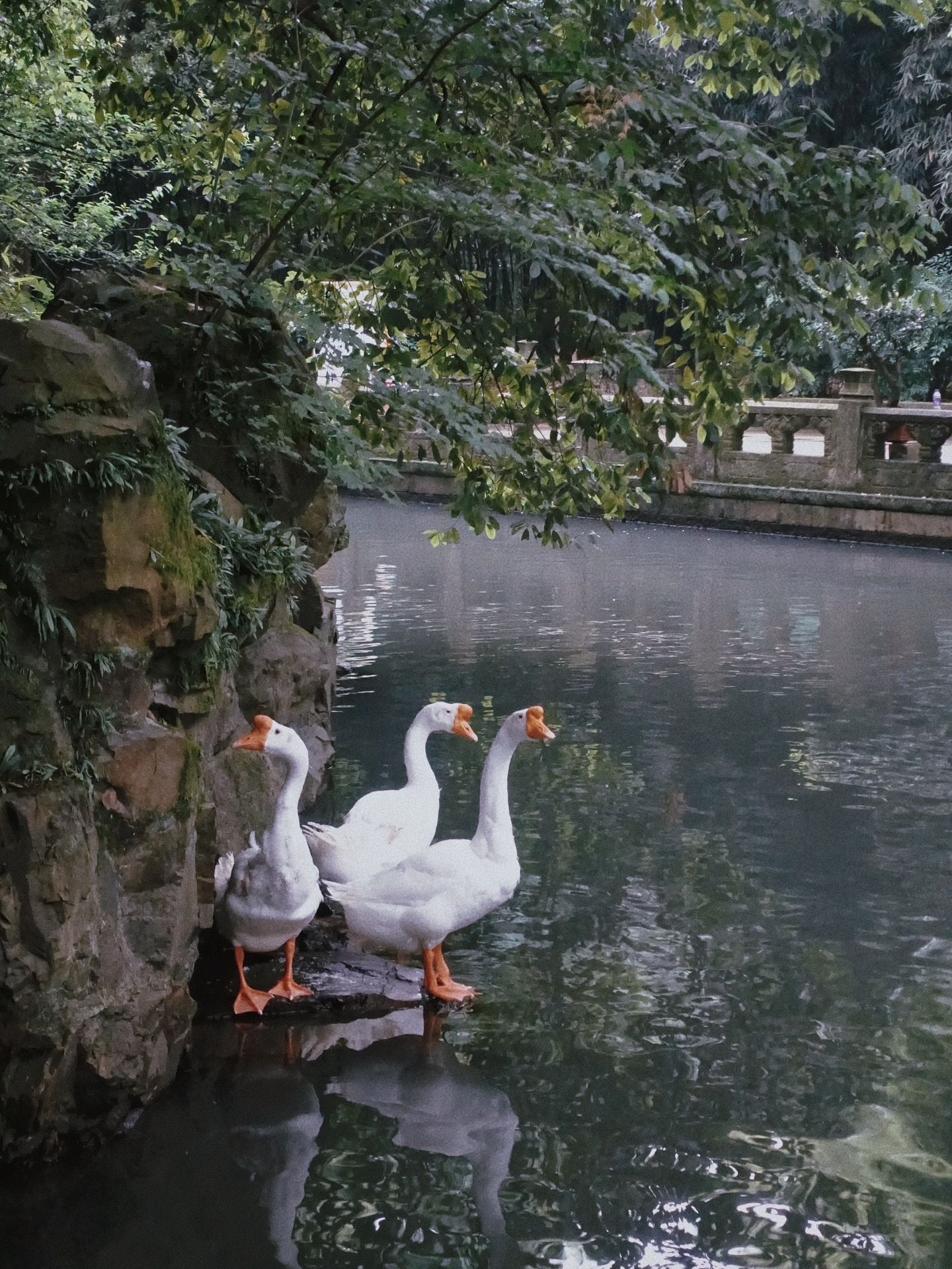 其中鹅池非常漂亮,不光有几只大白鹅近距离接触(虽然有点呱)!旁建鹅池儿子是王羲之父子共题,鹅字也是其字体灵感来源!