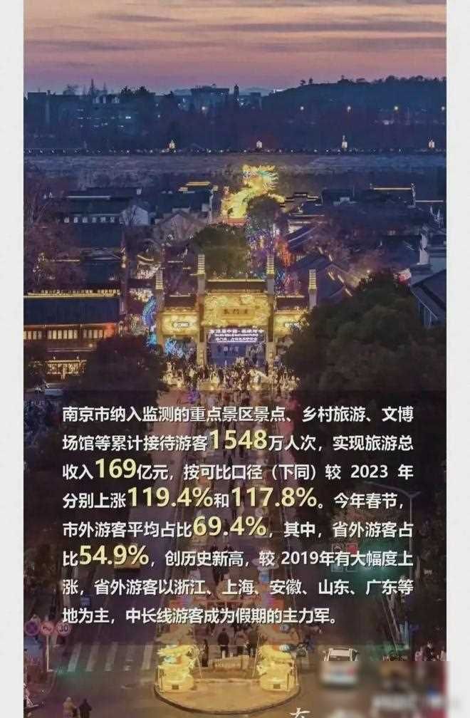 首先,让我们看看南京的数据。游客量暴涨119%,接待1548万人次,旅游收入更是高达169亿元。苏州和扬州也不遑多让,游客量分别增长40%和78%,带来的旅游收入也是十分可观。南通虽然稍逊一筹,但仍有47%的游客量增长,带动了48亿元的旅游收入。而在这些城市的热闹景象之中,镇江和泰州却显得有些不合时宜。