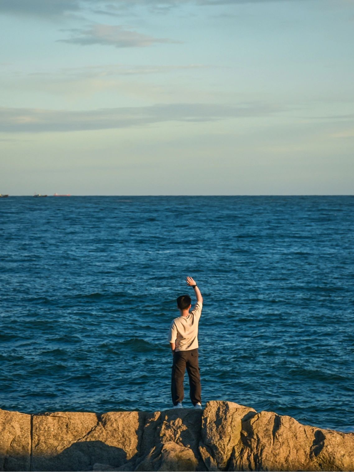 ️南海观音:导航“南海观世音旅游景区”,下午五点左右到的,海超级蓝(图5-7),景区没有沙滩,海岸都是礁石,常年海浪很大,适合观浪(图6),蓝色海景下容易拍出“冷白皮”的质感照片,出了观音景区,往停车场左手边泥土路走5分钟可达烂尾楼,这个地方可以搜到很多笔记,就不赘述啦。以上两个点免门票,停车费10元