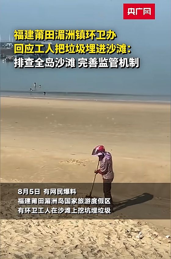 (来源:百姓关注2024年8月6日关于《福建湄洲岛沙滩上演“垃圾消失术”:工作人员持铲子直接挖坑填埋》的报道)