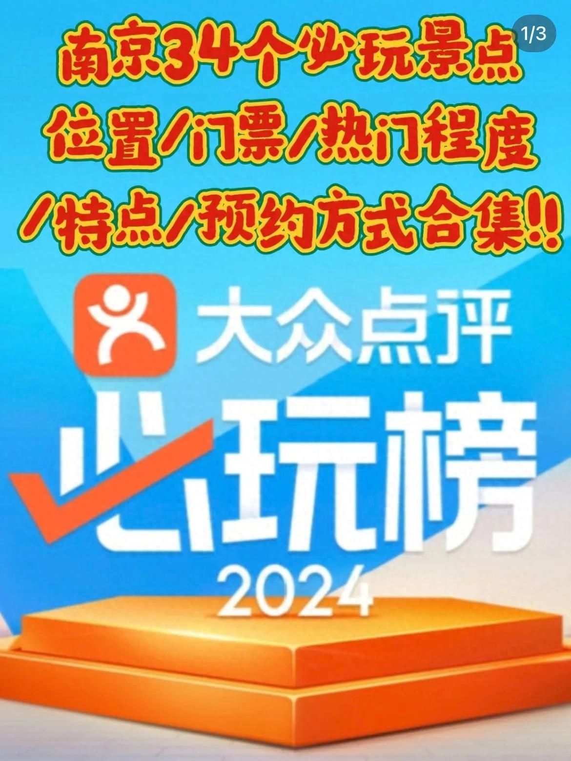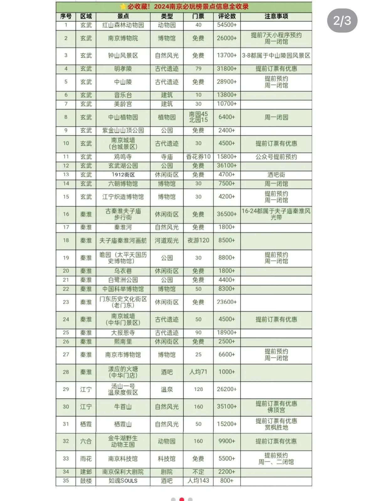 大众点评必玩榜出炉,南京34个景点入选!吐血整理了每个景点的类型、门票价格、评论数(热门程度)、预约购票、开放时间等信息,见图片
