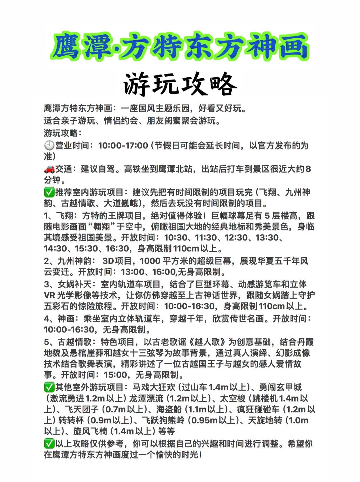 以上攻略仅供参考,你可以根据自己的兴趣和时间进行调整。希望你在鹰潭方特东方神画度过一个愉快的时光!