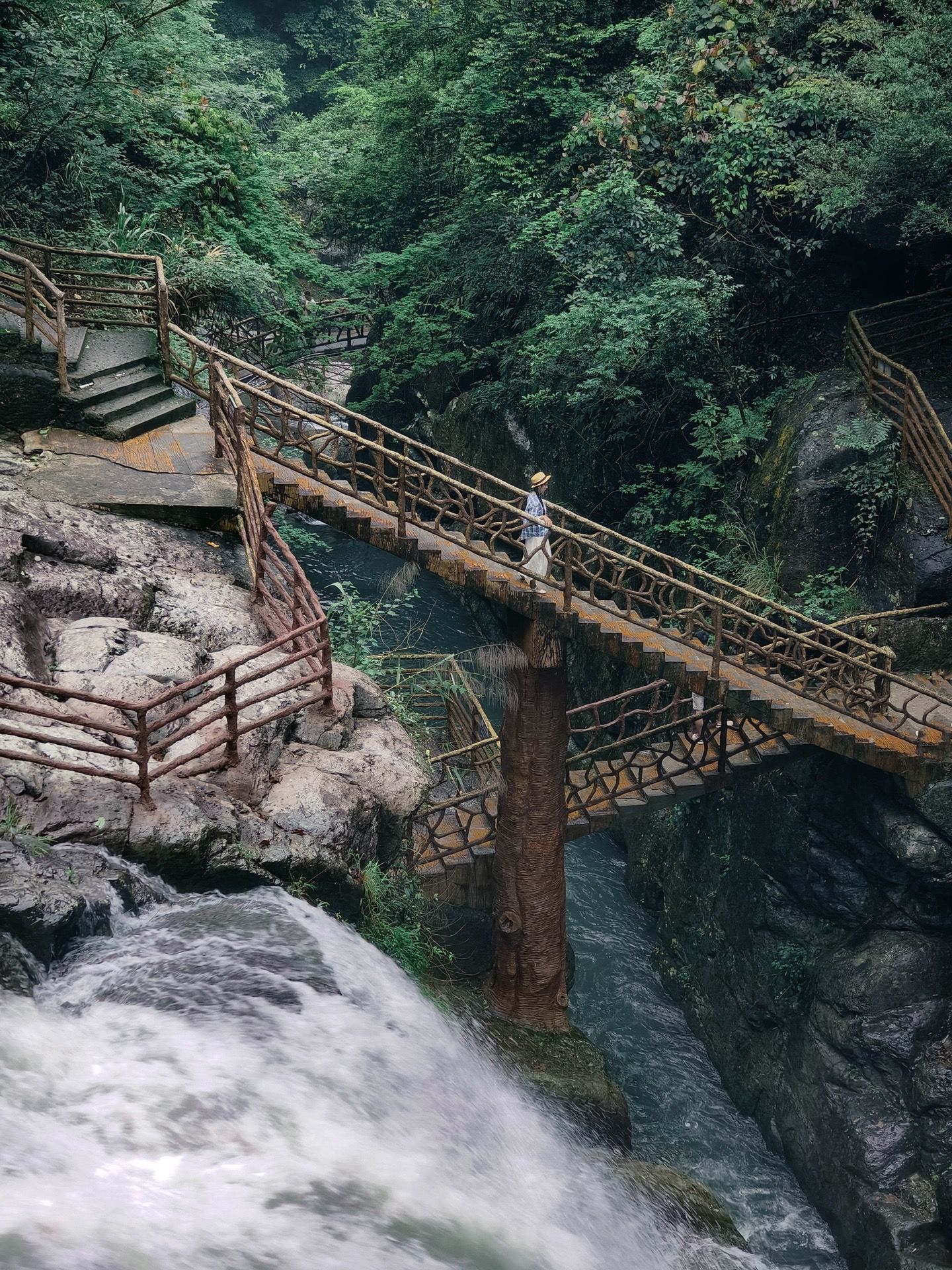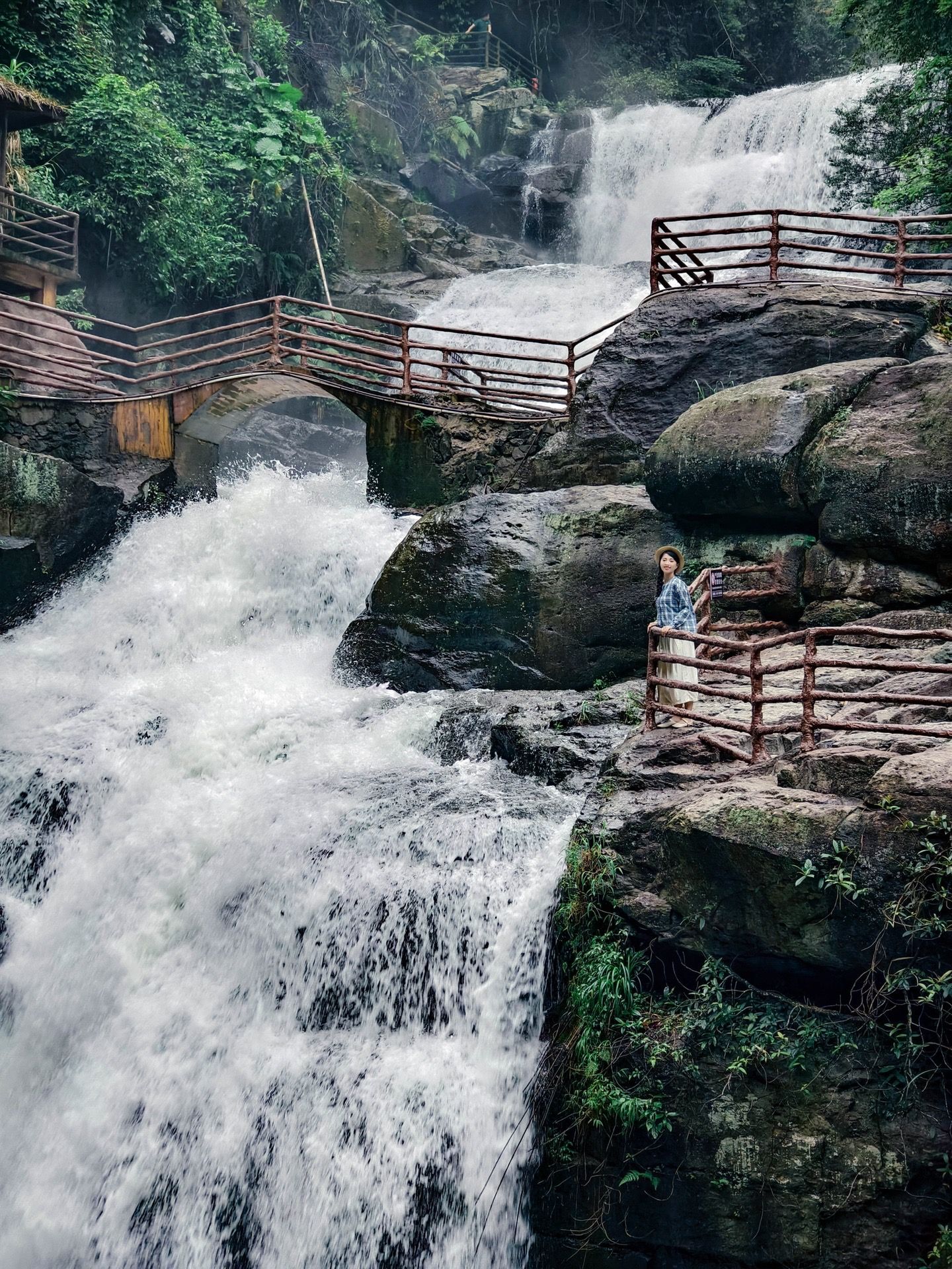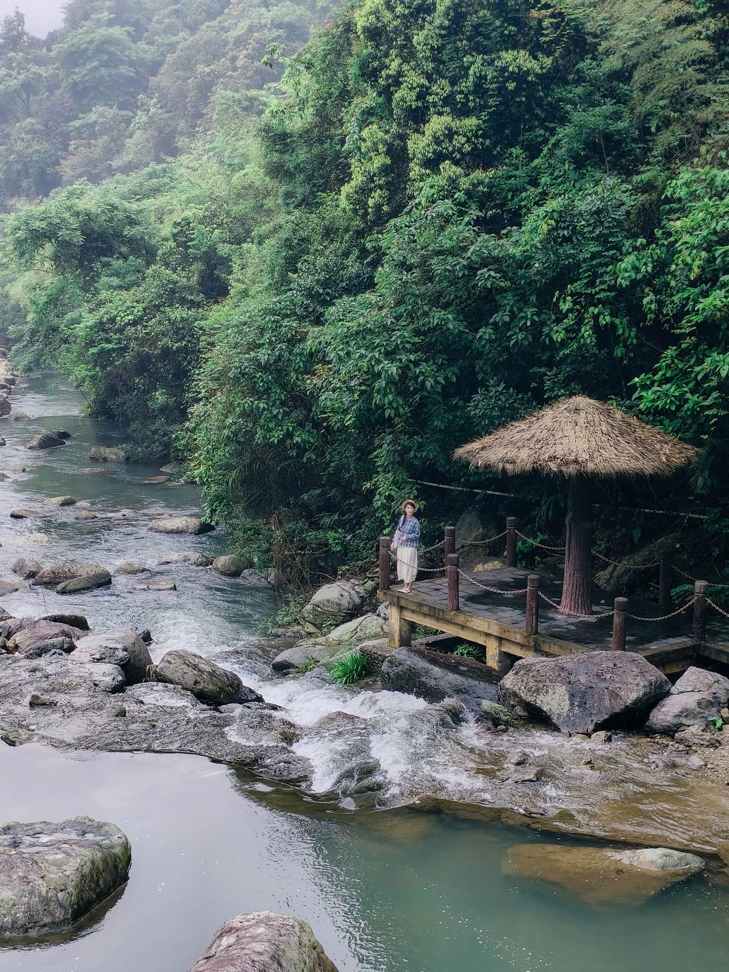 前面是亲水游玩和休息区,可以领免费擂茶。最后集中有五个瀑布,飞虹瀑布逛完后就有下山路。下山路没有风景,纯森林步道。