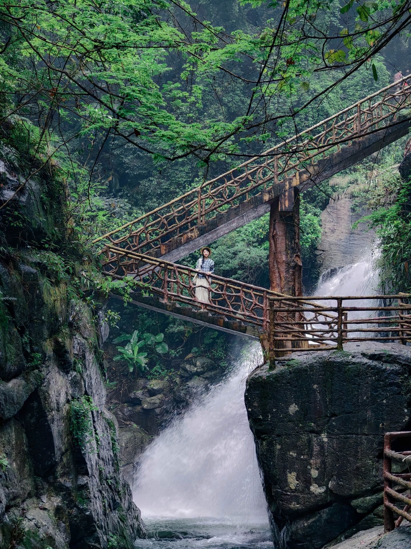 斗方崆瀑布:V字楼梯在山间,秘境的感觉