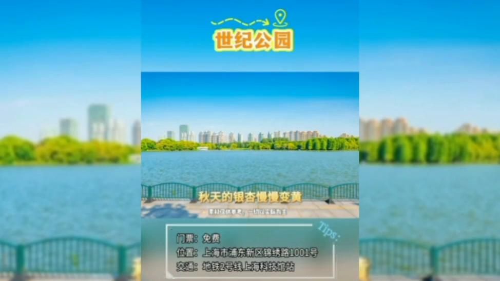 ·5. 世纪公园免费。秋天的银杏慢慢变黄,搭配上公园的植物也特别好看,是郊游的绝佳地。