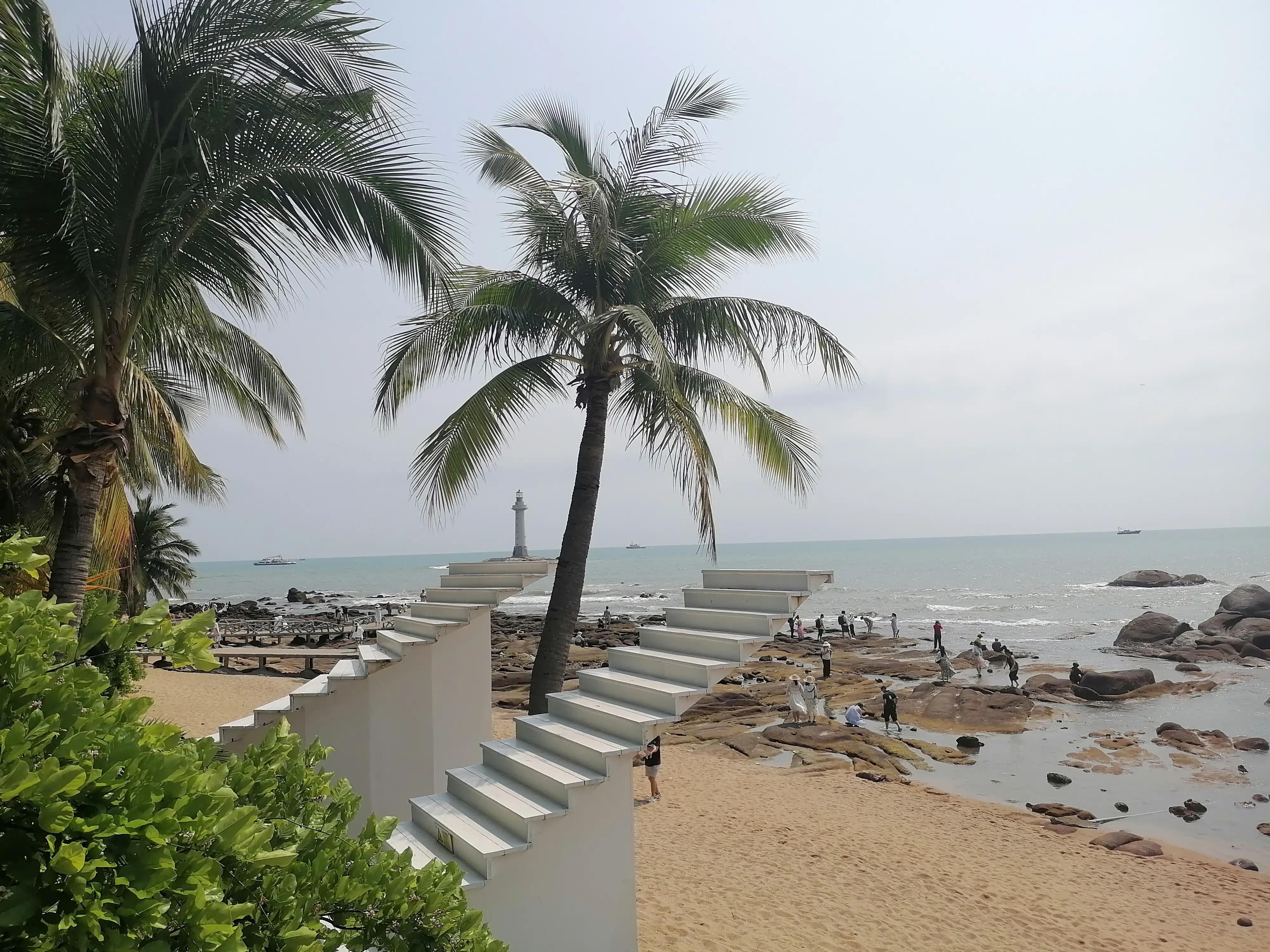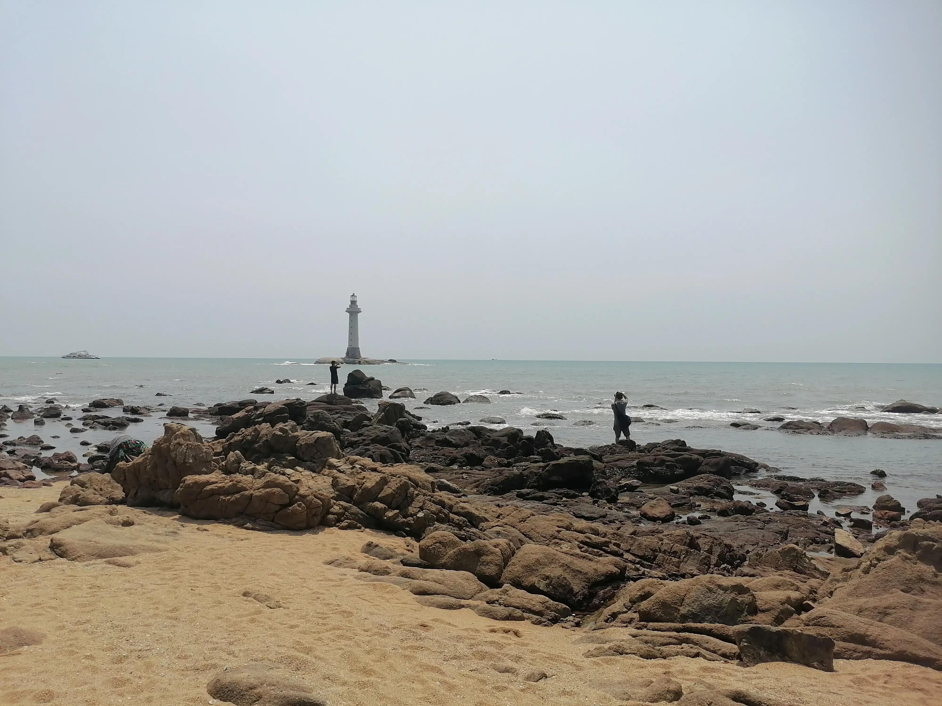 去大小洞天不收门票,老人直接刷身份证进门,年轻人门口扫码预约。大小洞天的风景就是天然的礁石,碧蓝的海水,慢慢驶过的小船,为远航的人指引反向的灯塔,所有的景观都很有大家对海的期望,所以拍婚纱照的人络绎不绝,一下午2个小时的时间,光看拍婚纱的至少是看到了8—9对。太阳光不这么足的时候,估计拍照的人会更多。大小洞天洗手间边上有提供饮用水的地方,也可以接白开水。以前没有注意到。大小洞天的景区不收门票,但景区好多餐桌是消费区,柠檬水25元,百香果味的25元,咖啡35—40一位。,面朝大海坐一下午非常舒服惬意。还有一部分人喜欢走在这个沿着海岸线的甬道,看看风景,散散步,这里也有游览车,28一位。