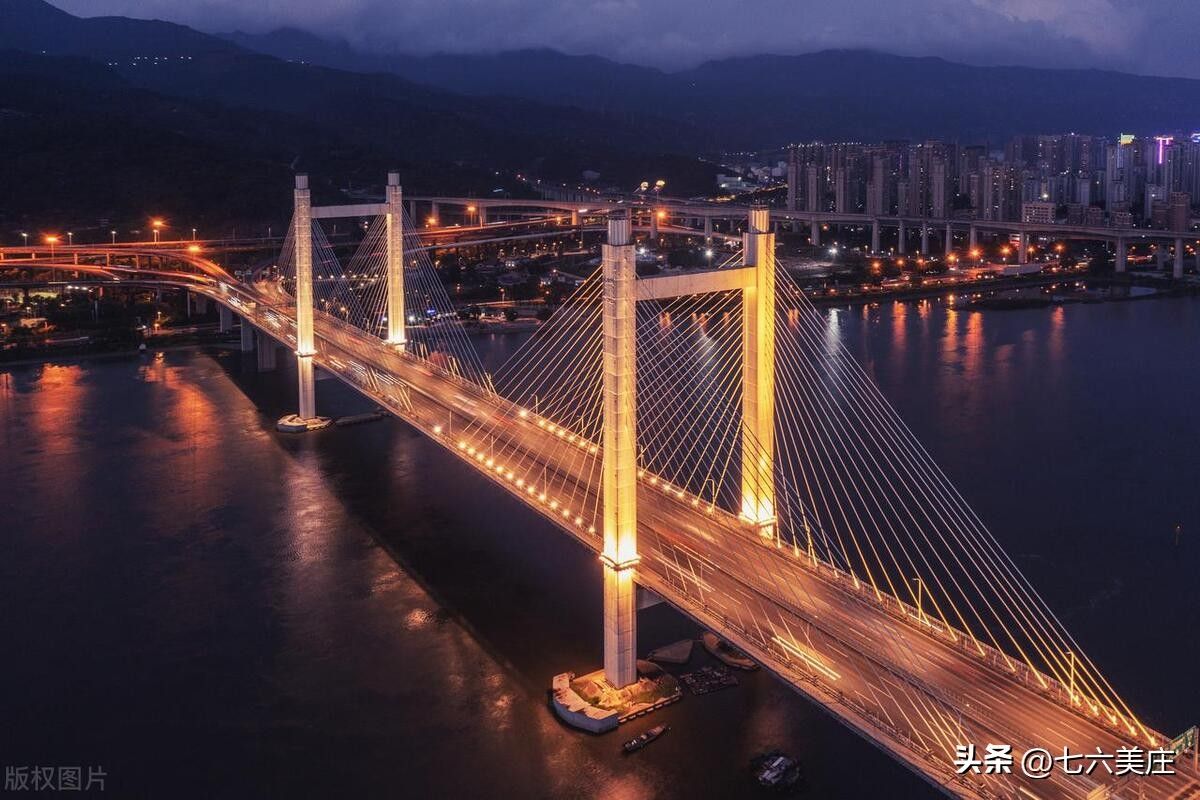 晚上,我们来到了福州的标志性建筑——闽江大桥。站在桥上,你可以俯瞰整个福州市的夜景,感受这座城市的繁华与美丽。同时,你还可以远眺闽江两岸的灯火辉煌,欣赏到美丽的夜景。