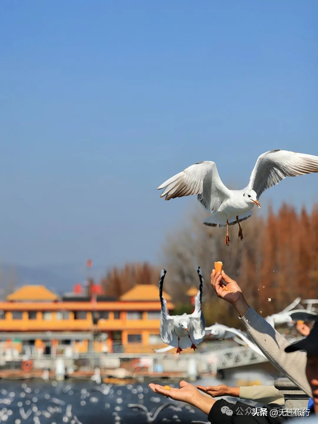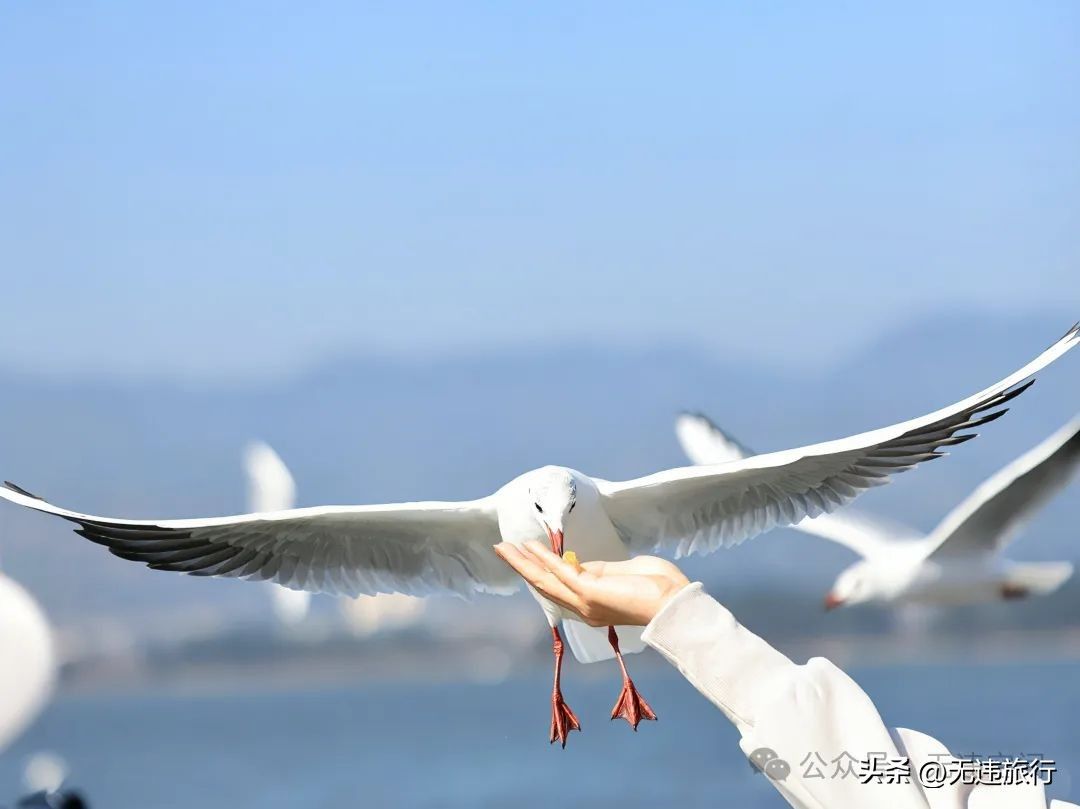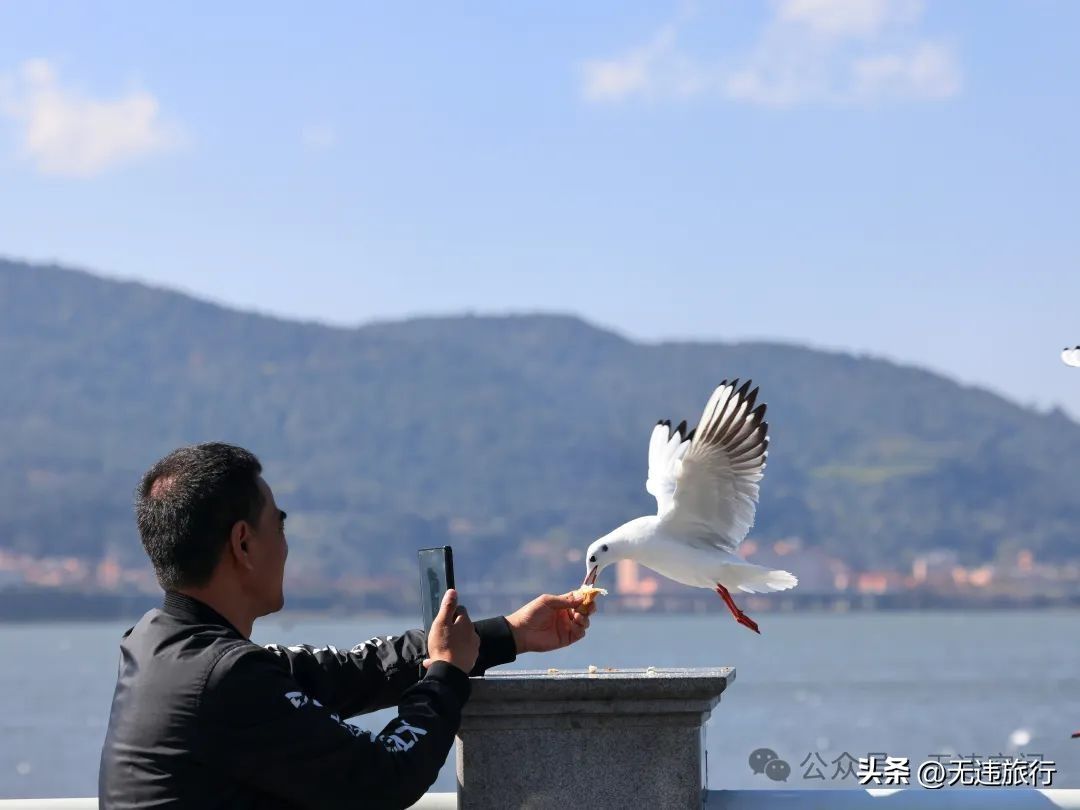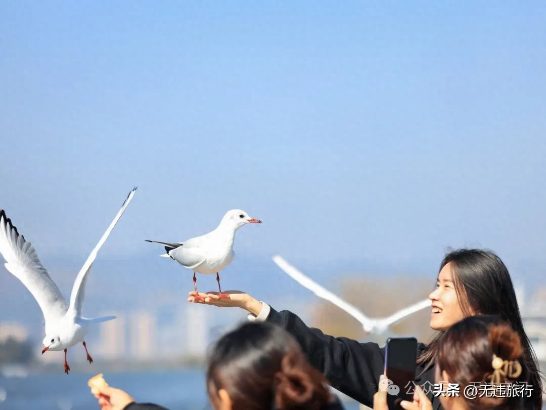 暖冬昆明旅游,滇池大坝观鸥,你可千万不要错过啦!这里的海鸥超级可爱,只要轻轻投喂,都会与游客很好的互动,旅拍(特别是抓拍)摄影,那是绝对出片。