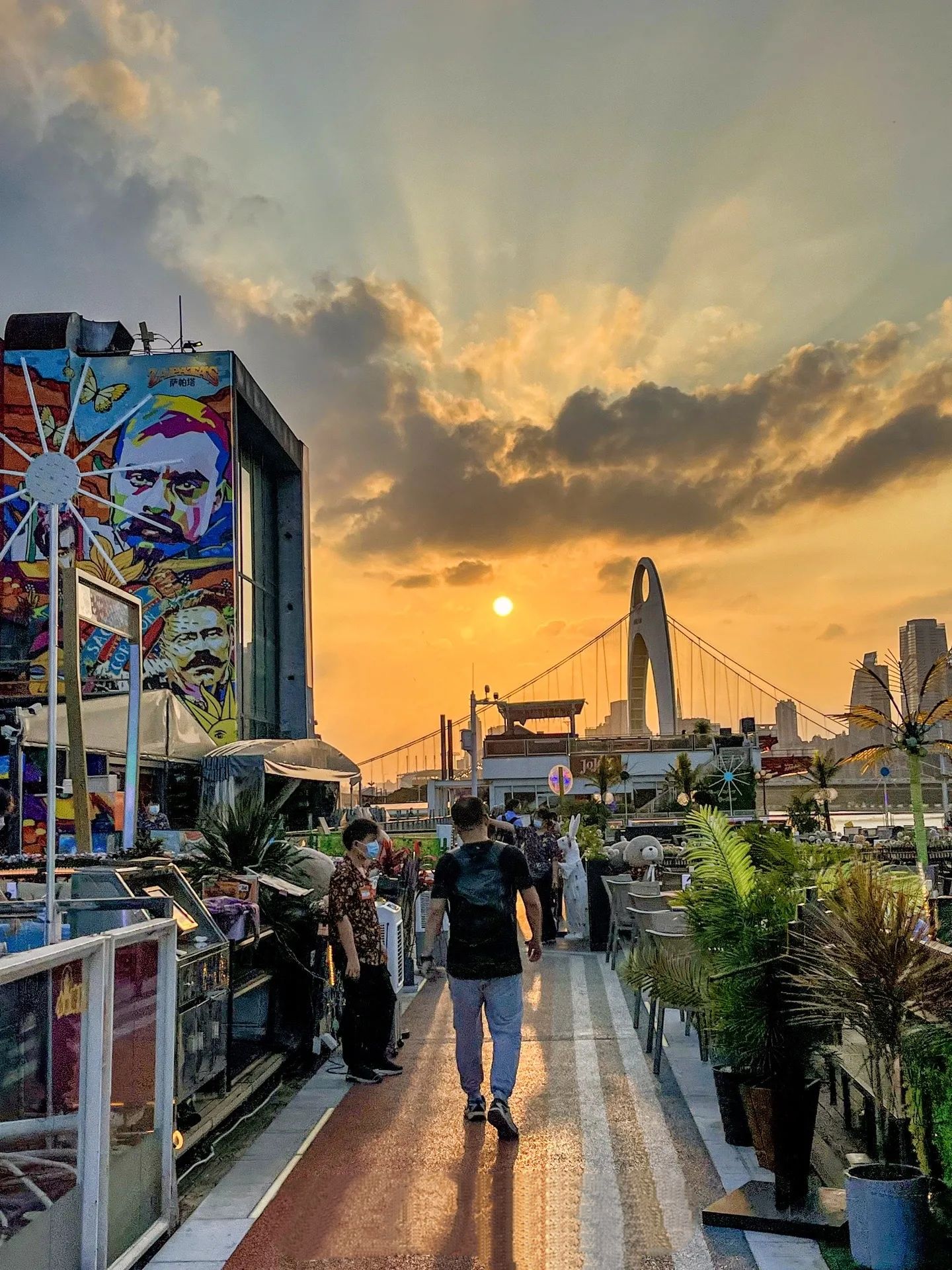 傍晚,到海心桥欣赏日落是一个绝佳选择。记得提前在公众号预约哦(节假日提前一天预约,其他时间可以当天预约,不用身份证)。日落前30分钟到达,你可以欣赏到超美的日落和晚霞。