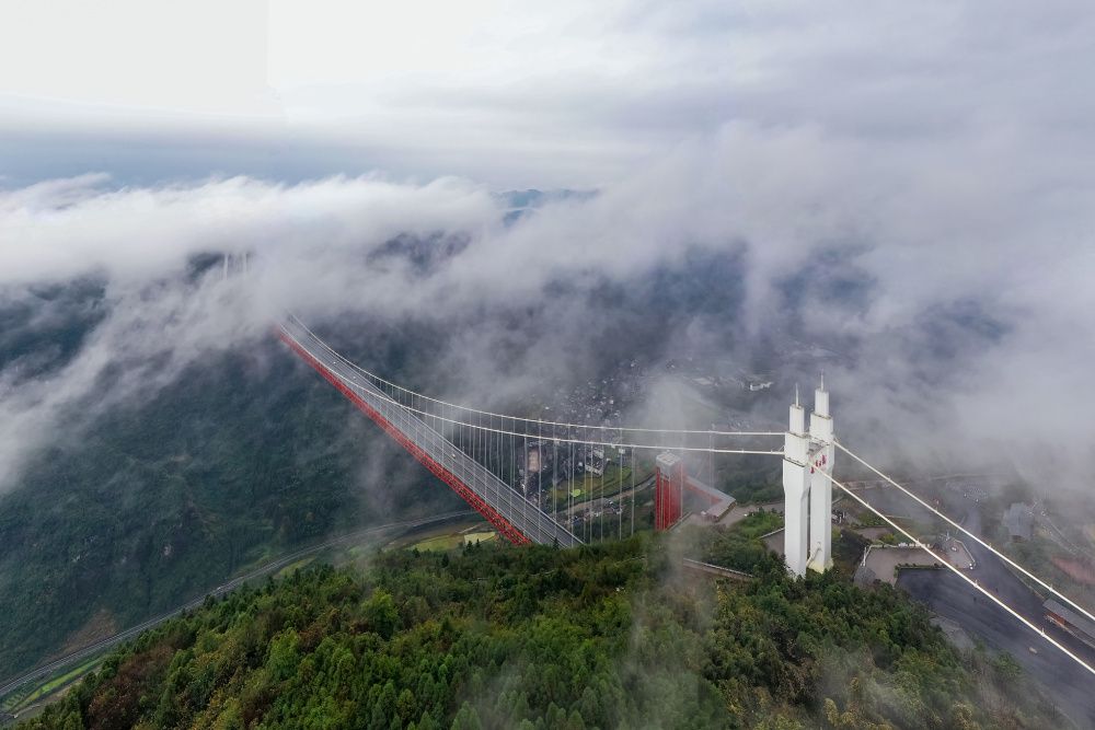 云雾中的矮寨大桥(图片来源:CFP)