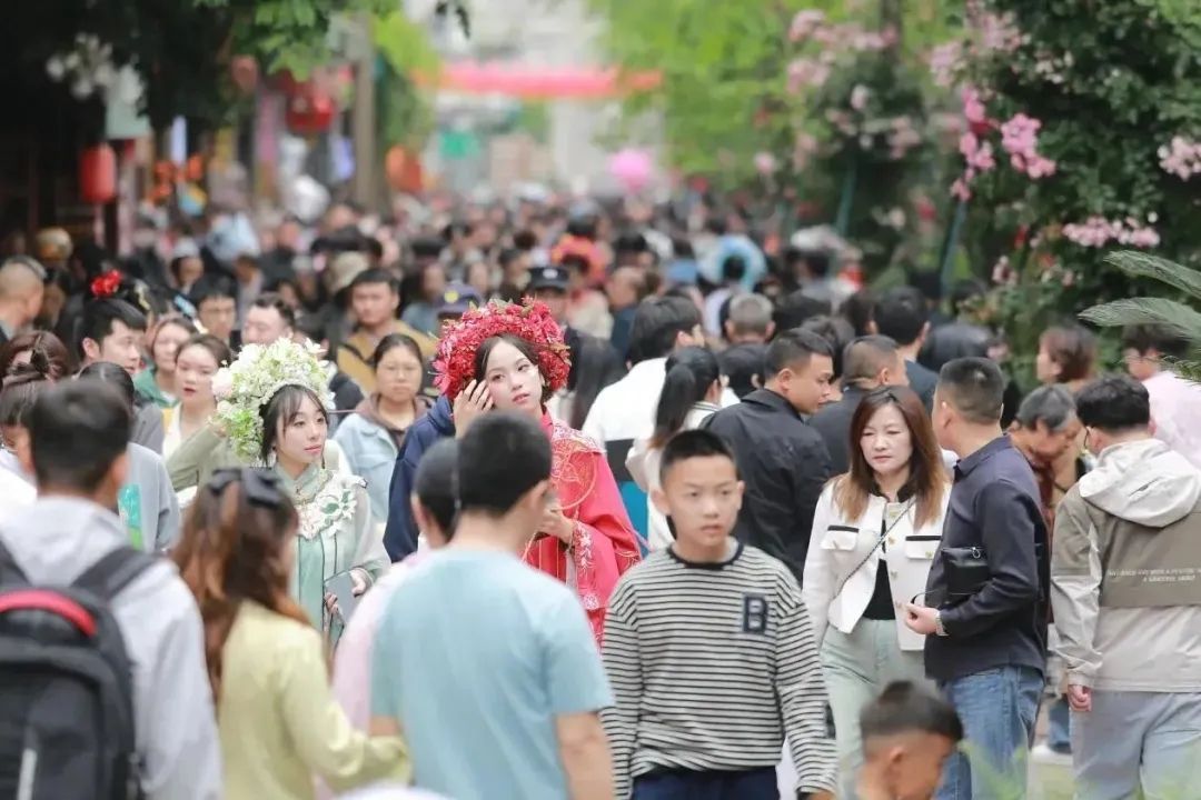 消费趋势的改变和“新中式”旅行的火热出圈。“五一”假期,文博场所接待观众超5000万人次,“新中式”旅行成为年轻游客消费热点,博物展览、音乐演出及各类古村古镇的沉浸式文化体验,让人深度感受各地文化魅力。可以看到,消费模式和旅游方式发生转变,游客们不远万里来到洛带古镇,戴簪花、穿汉服,在明清客家建筑群和被誉为“大鱼海棠”的客家土楼前拍照打卡,成为成都旅游的又一新时尚。