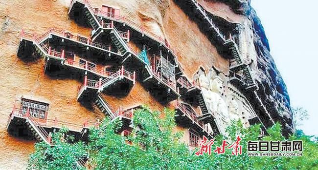 麦积山石窟,是中国四大石窟之一,凿建在形如麦垛的麦积山上。麦积山山林苍翠,灌木丛生,麦垛形状的山头通体丰满,颜色红润,高高矗立在万绿丛中。整座山不像生长在粗犷的北方,倒有着南方的秀雅。