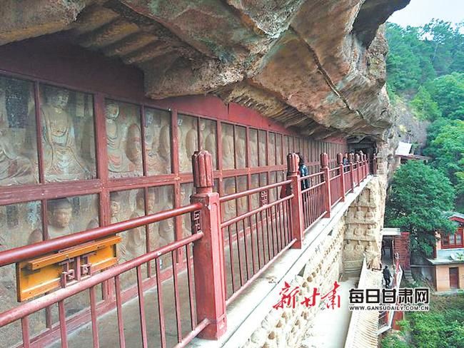栈道云梯修建于悬崖,历代游客诗人,虽惊慕不已,敢于攀至顶端者却凤毛麟角。五代诗人王仁裕斗胆攀登,写下了切身感观:“蹑尽悬空万仞梯,等闲身共白云齐。檐前下视群山小,堂上平分落日低。绝顶路危人少到,古岩松健鹤频栖。天边为要留名姓,拂石殷勤身自题”。如今的麦积山经过大规模的加固修整和栈道修复,摇摇欲坠的崖体已经稳定,山上栈道也宽阔整齐,安全可靠,昔日王仁裕笔下的险恶情景早已成为历史。人们可以放心大胆地登游各个崖阁,随心所欲地进入各个洞窟,畅意远眺山下美景。
