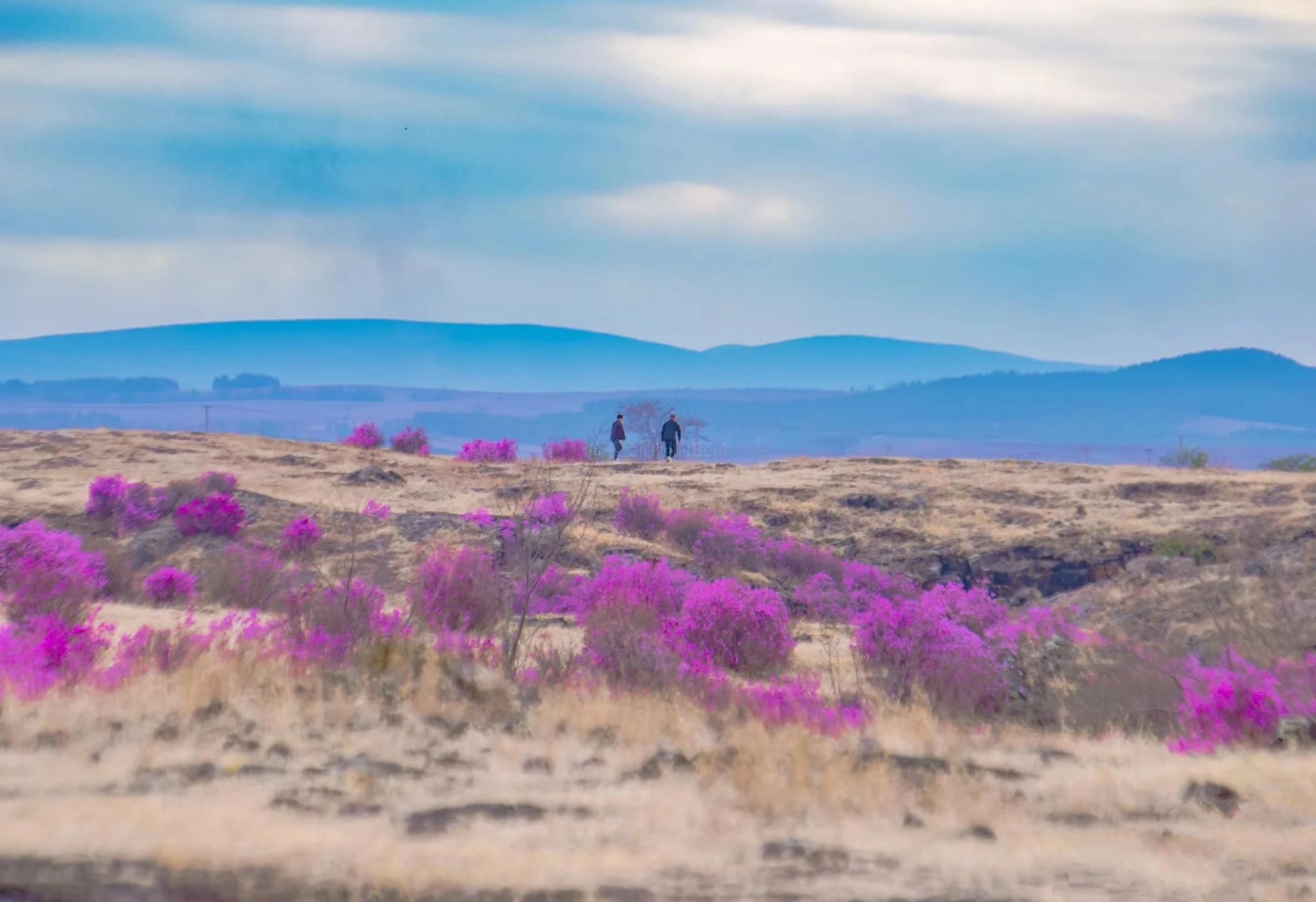 映山红是东北非常普遍的野花,但不同的是,这些映山红生长在火山岩浆的石板缝隙和火山口中,以顽强的生命力在努力绽放着。