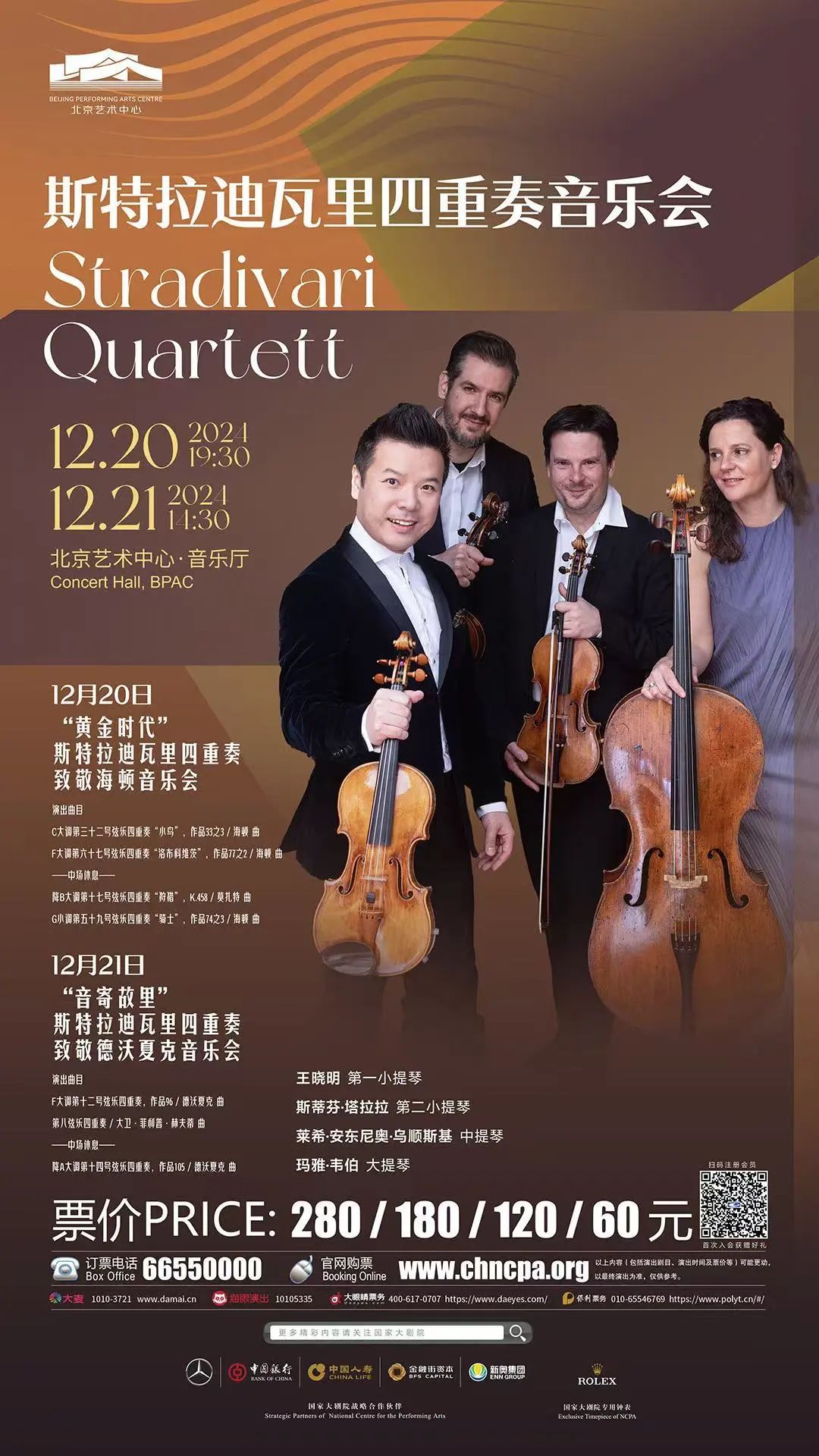 12月20、21日,由著名小提琴家王晓明领衔的斯特拉迪瓦里四重奏将登台北京艺术中心献上两场音乐会,分别以“黄金时代”和“音寄故里”的主题向海顿与德沃夏克两位音乐大师致敬。斯特拉迪瓦里四重奏组建于2007年,由中国著名小提琴家王晓明领衔,四位才华横溢的音乐家每人手持一把斯特拉迪瓦里名琴。他们的乐器本身就是音乐界的传奇,每一把琴的音色与品质都独一无二,《留声机》杂志曾这样评价他们“就音色之优美、音质之纯净与合奏的一致性而言,这个四人组自豪地配得上其响亮的名号。”