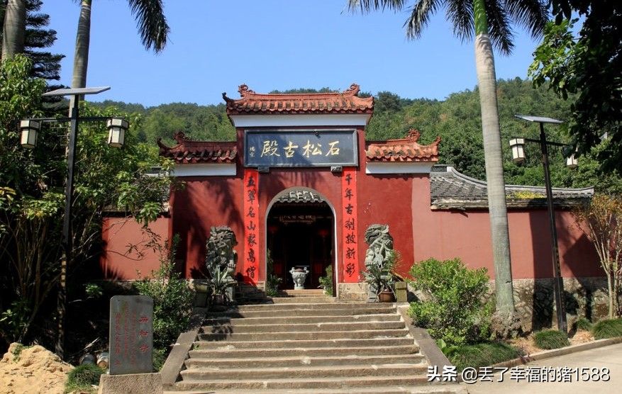 石松寺位于福建省闽侯县南屿镇中溪村西,一名石嵩,宋大中祥符三年(1010年)建。初名灵凤,绍兴间,因僧人天石于石上植松而易今名。寺坐北朝南,仅存大雄宝殿、西配殿和东堂,占地面积约800平方米。大雄宝殿为明代重建,面阔五间,进深三间,歇山顶,抬梁穿斗式木结构,仿宋风格,是闽侯县最古老的大雄宝殿建筑。寺内有宋绍兴四年(1134年)凿造并浮雕松鹤图案的石槽和绍兴十年的植松碑。寺侧有墓塔,寺后有一石室,壁上镌刻五段宋代摩崖诗刻。