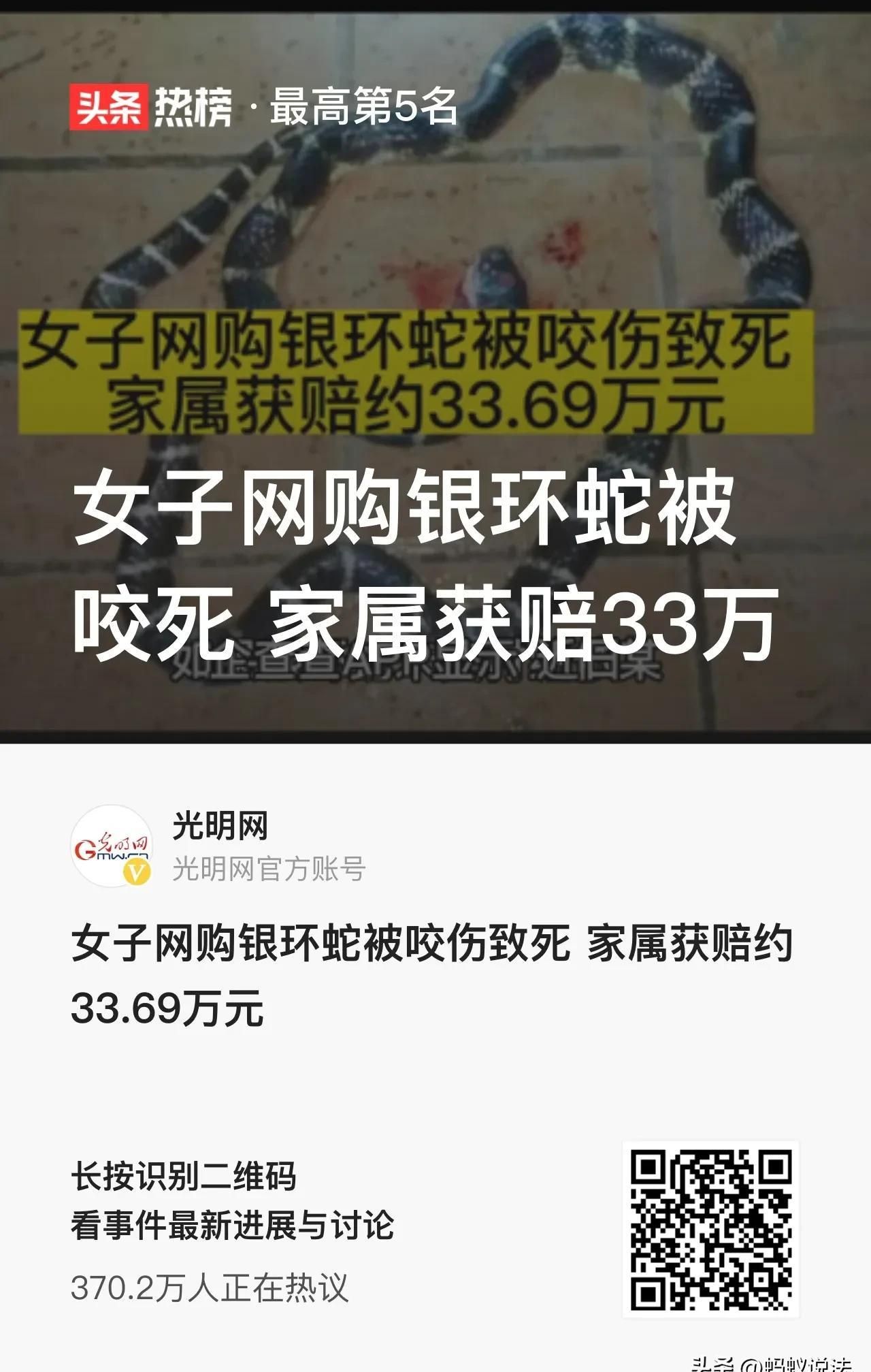 “要想生活过得去,就得往远看,不然眼前就得愁。”(《老话说得好》)小芳这事儿吧,真不是天上掉馅饼砸脑袋上的,那是各种奇葩事儿赶到一块儿了。这年头,网络发达了,宠物界也是百花齐放,啥猫猫狗狗的都过时了,年轻人都开始整些新奇的。可话说回来,这背后埋的雷和绕的弯儿,多了去了,还有那法律的红线,一不小心就踩上了。陕西渭南有个叫小芳的21岁大学生,家里条件一般,但爸妈特别宠她,由着她发展兴趣爱好。小芳从小就爱动物,小狗、小鸟、兔子养了个遍。可这些小家伙渐渐让她觉得不够新鲜刺激了。后来网购火了,小芳发现网上啥宠物都能买,连银环蛇这种奇葩货都有。银环蛇啊,听着不咋出名,其实是咱们国家陆地上最毒的蛇之一,比五步蛇、眼镜蛇啥的狠多了。俗话说得好,“初生牛犊不怕虎”,小芳对银环蛇的危险性一知半解,就大胆地把它当成了新宝贝。
