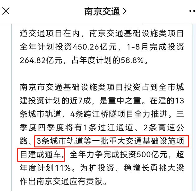 就在昨天(9月13日),南京交通发文《扩投资稳增长!南京持续加大交通基础设施投资》,文中透露了几大好消息: