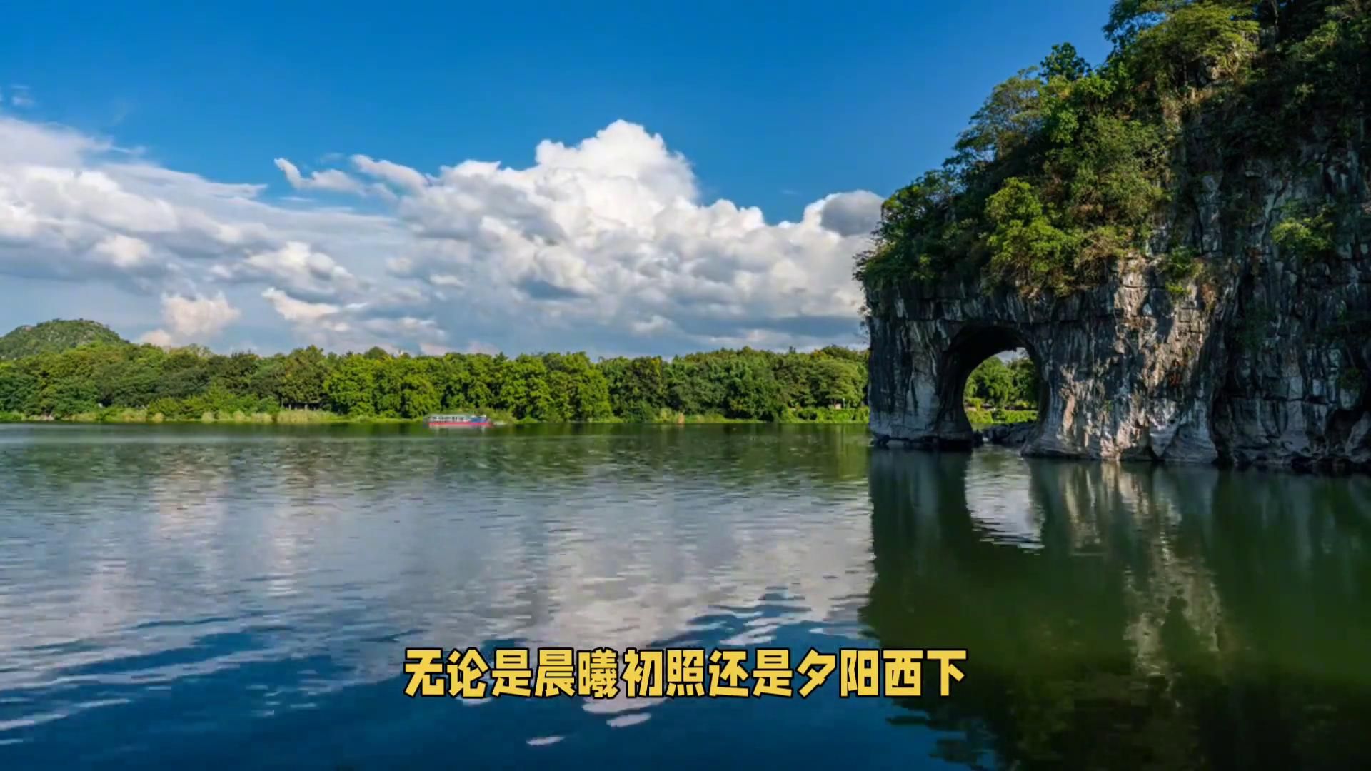 ·二、象鼻山。因山形酷似一头巨象临江汲水而得名,是桂林市的标志性景点之一。这座山峰矗立在漓江之畔,形态逼真,栩栩如生。无论是晨曦初照还是夕阳西下,象鼻山都以其独特的魅力吸引着游客的目光。站在观景台上,你可以尽情感受大自然的鬼斧神工,同时也不忘记录下这份难得的自然奇观。