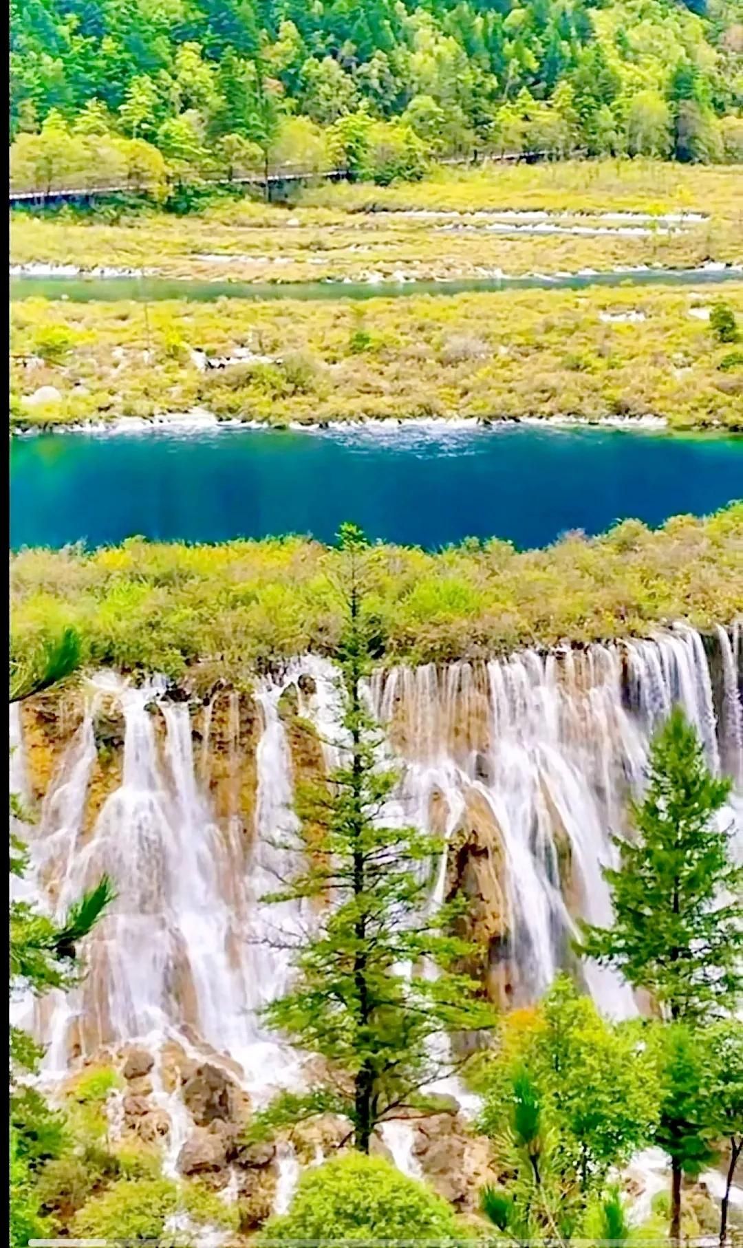 3、诺日朗瀑布:它是九寨沟最壮丽的瀑布,落差达到300米,宽度也达到上67米,非常壮观。