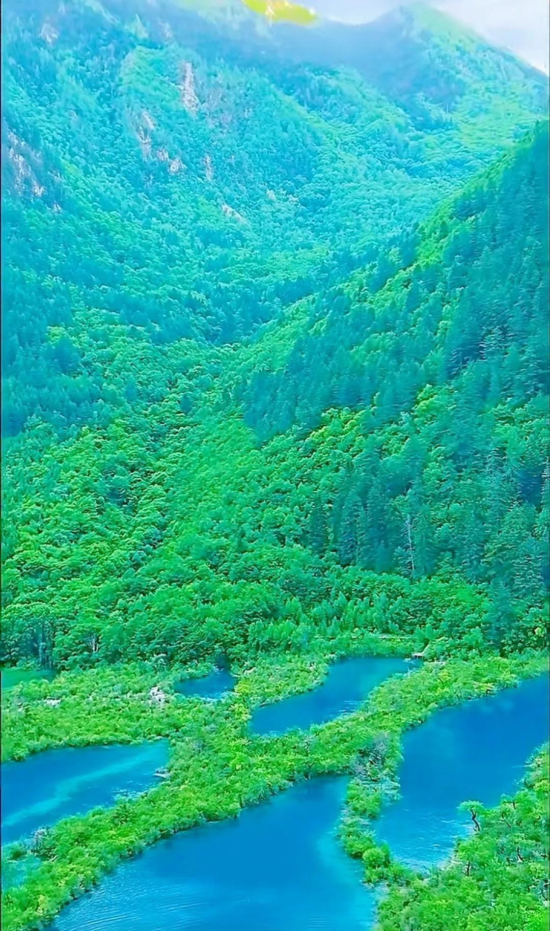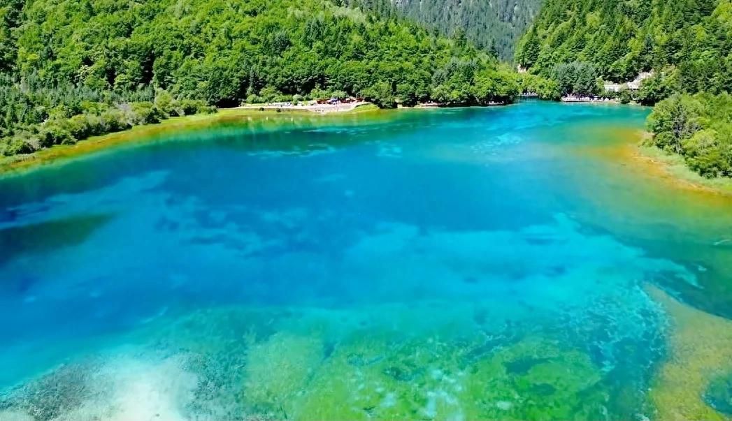 五花海:湖水清澈见底,呈现出五彩斑斓的色彩,是九寨沟最具代表性的景点之一。在阳光的照射下,湖面仿佛一块巨大的调色盘,美不胜收。