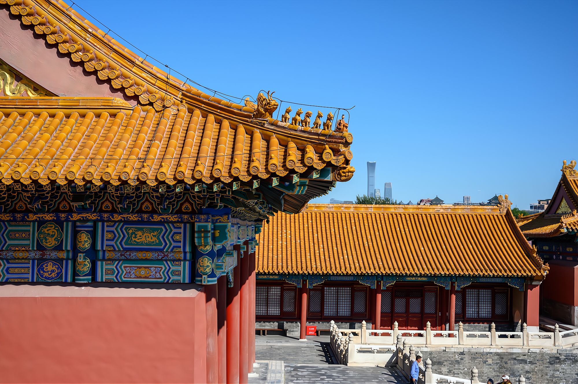 故宫的美不仅在于它的大气磅礴,其建筑细节更是让人赏心悦目,尤其是那屋顶的瓦片,其中主殿以黄色为主,其它建筑上还有绿色、蓝色、紫色、孔雀绿等五色缤纷的琉璃瓦,屋顶正脊及飞檐上的吻兽更是造型优美、栩栩如生。