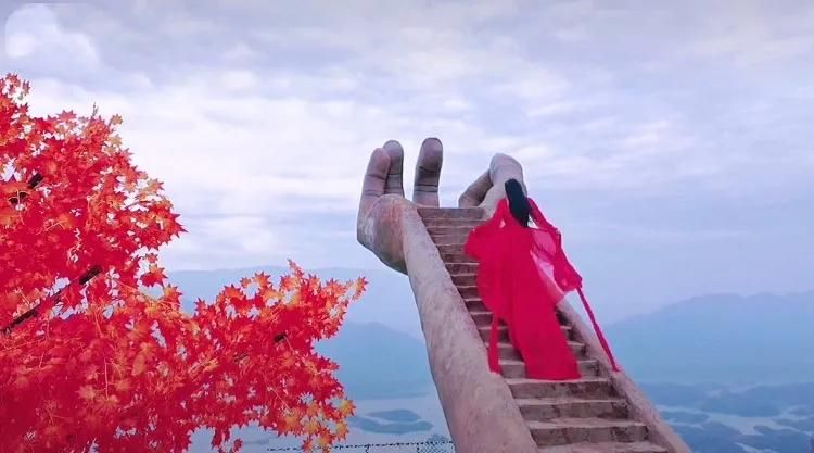 而最让人震撼的则是踏上“被佛手捧在手心里”的通天阶梯,身处凌空被环绕般的强烈视觉冲击。