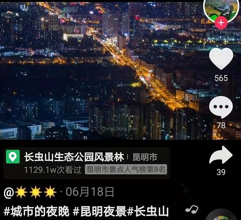 “如果你在昆明,累了就来长虫山看夜景吧……到了山顶你会觉得人间值得。”
