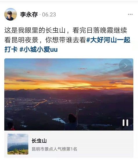 “好好看的日落,好好看的整个昆明……”