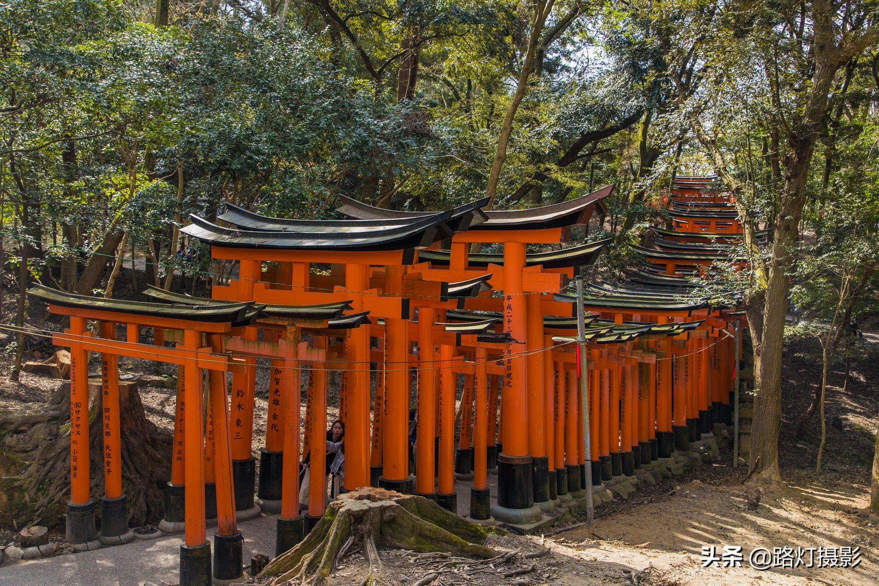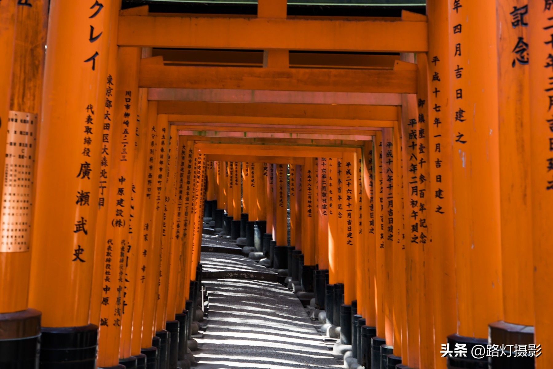 #宅家看世界#,关注:路灯摄影,每天分享旅途好风景。今天我带大家到日本京都去看一看。日本京都景点众多,但位于伏见区的稻荷大社是最特别的一个,完全是因为这里有一个千本鸟居,成为网红景点。说实话,这个千本鸟居真的非常震撼。