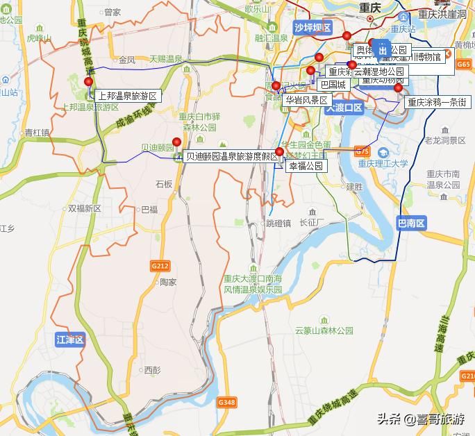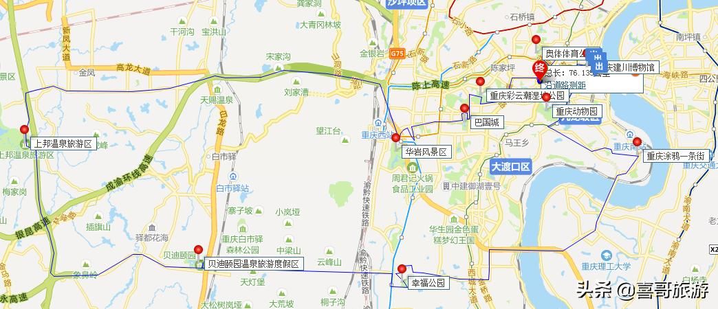 3、重庆九龙坡区十大景点自驾游行程安排: