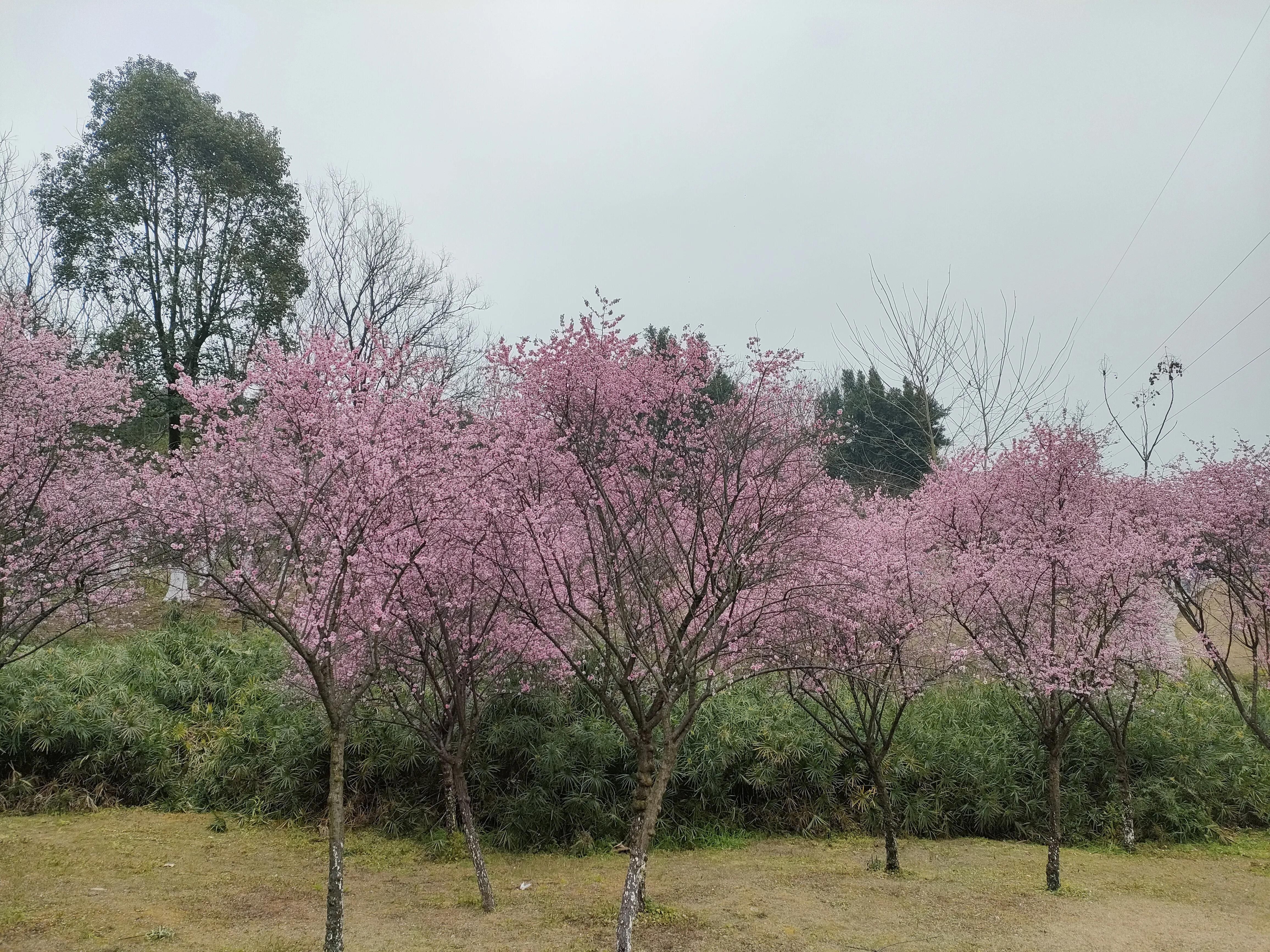 照母山2011年建成的前后那几年,花团锦簇,沿盘山公路两旁都是山花烂漫,格桑花,大力菊,向日葵等等争奇斗艳。如今一路上只见零星的迎春花,好不容易走到孝德林景区旁的梅林处,才见到了二三十株的美人梅。照母山不如龙头寺的花多。单就花的数量而言,照母山是“王小二过年,一年不如一年了!”