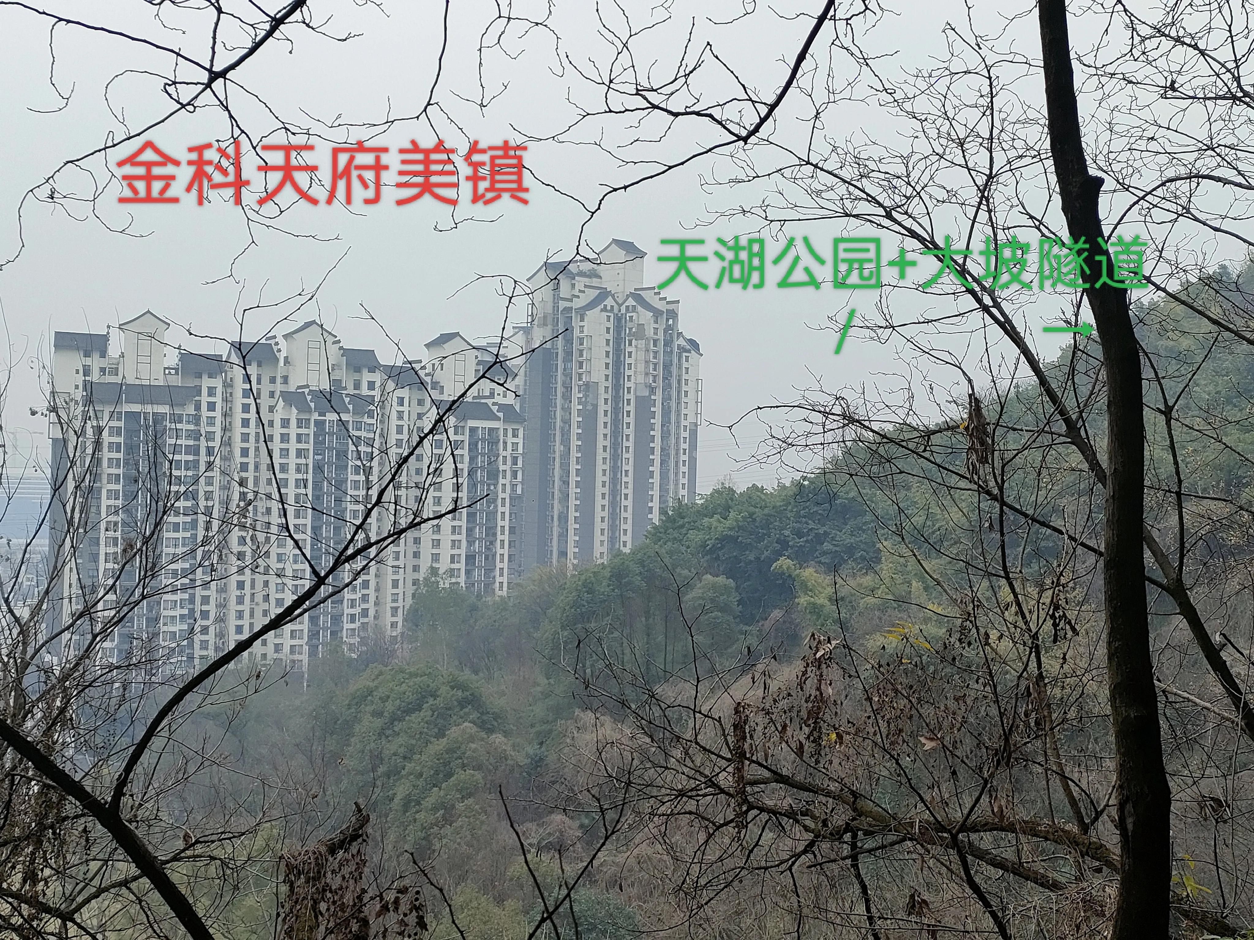 今天查看一下百度地图,决定另辟蹊径上照母山:坐149到吉乐村下车。先就近去了金科天湖美镇旁边的天湖公园。它其实就是一个社区公园,同是社区公园,大小和景致还不如金棕榈公园。