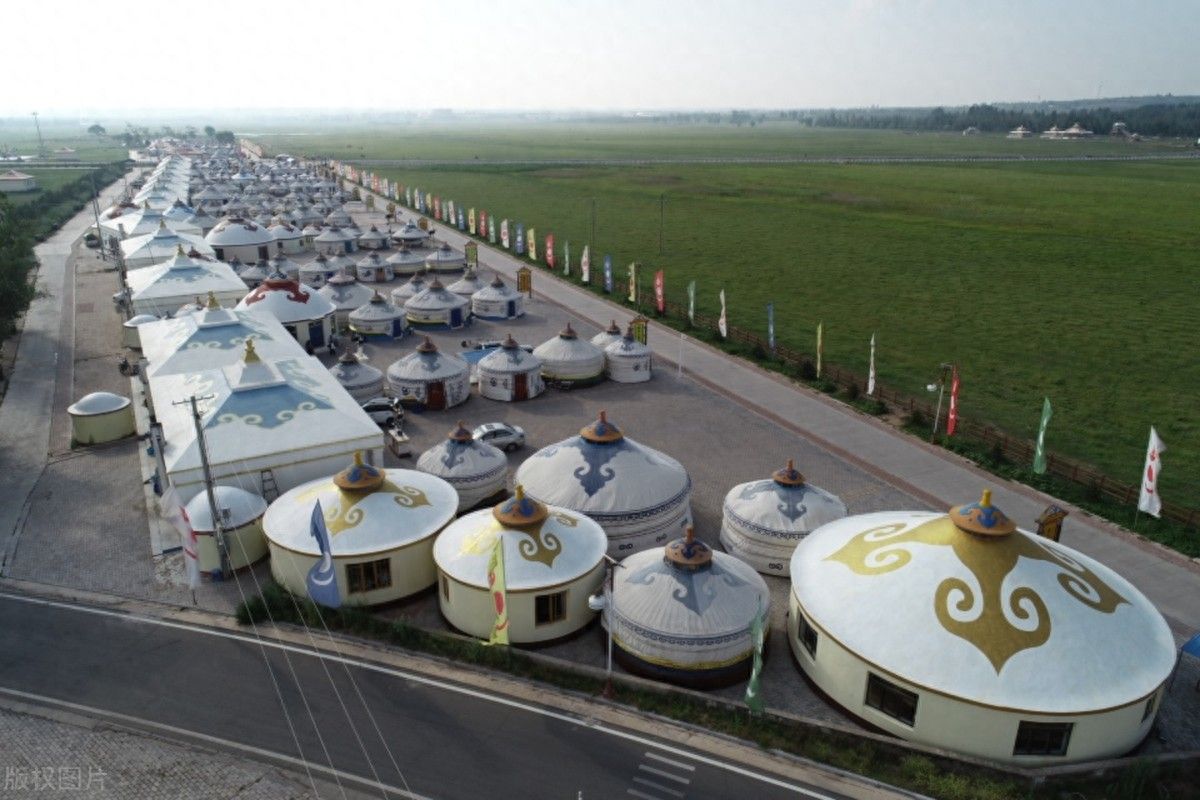 2. 鄂尔多斯草原:地处内蒙古自治区鄂尔多斯市西南15公里处。草场面积约1.5万亩,景区以大草原为背景,蒙古族文化为依托,形成“一心、两翼、六区”的布局。核心区是由一个蒙古金帐和200多个蒙古包组成的蒙古包群。