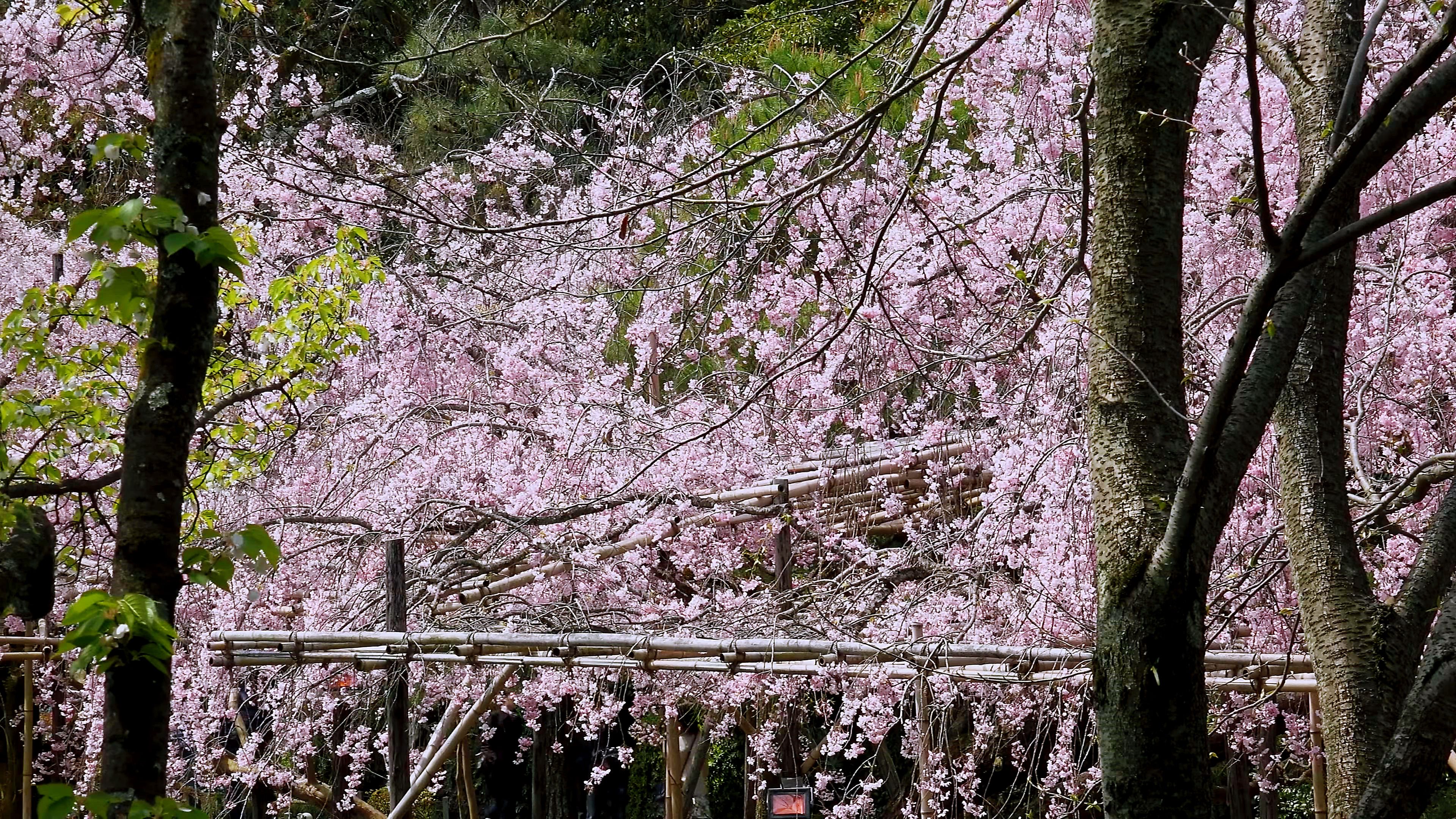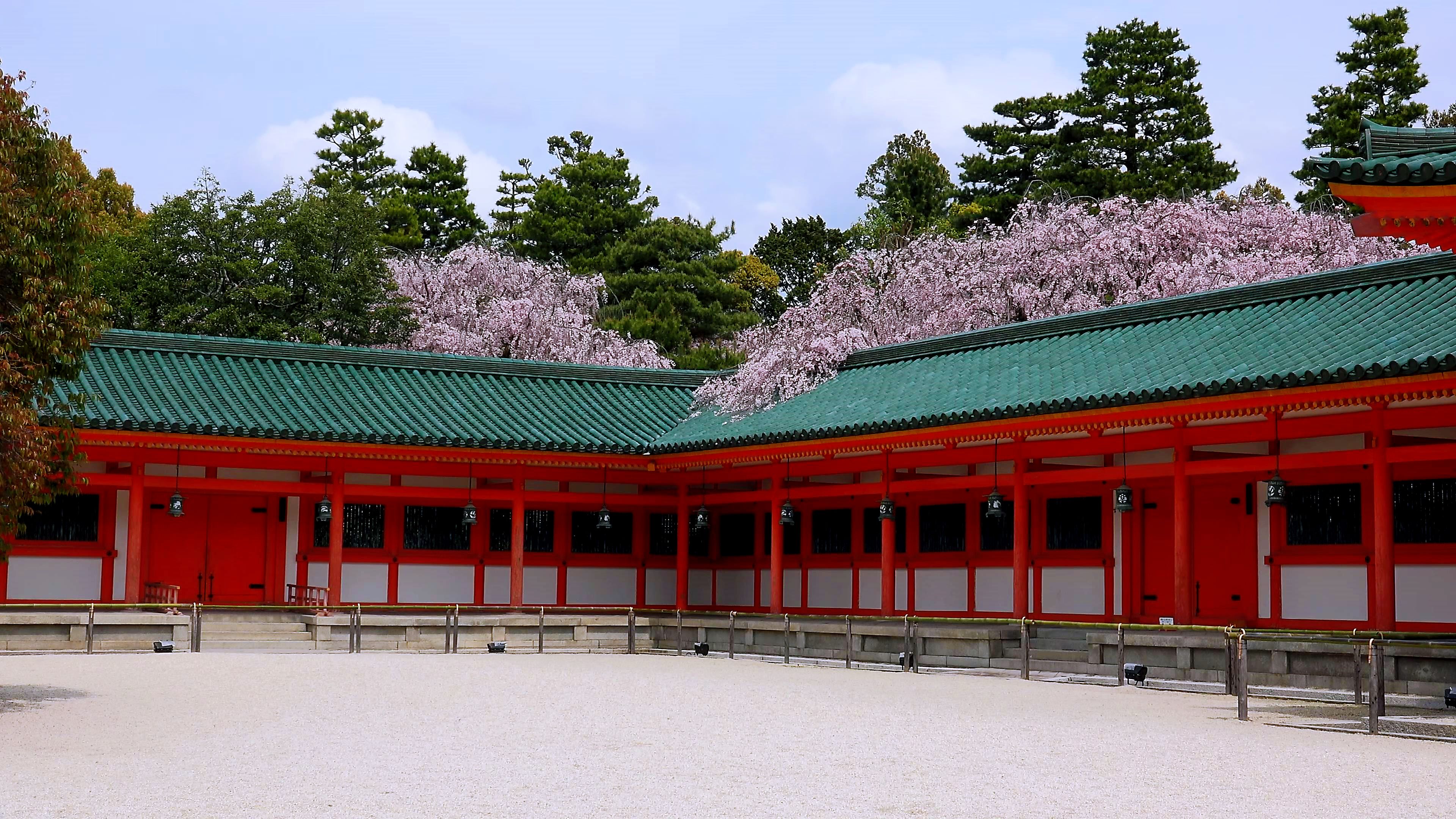平安神宫最有名的便是那垂枝樱庭园了。垂枝樱比起染井吉野樱来得晚开了些,因此就算是樱花季的后半才到京都的朋友也不需要太担心,因为平安神宫的垂枝樱季非常壮观,偏桃红色的花瓣隐约透露出了成熟的大人之美。记者个人非常推荐每年四月初平安神宫举办的夜樱音乐会,他们会在四月初的连续四晚邀请四组来自日本国内外的音乐人进行演奏,在优美的音乐陪伴下赏樱,那真的是无法言喻的美好感受。