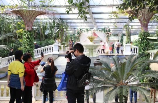 从花海中绕回来,途中经过采摘园、滑雪场、滑草场、冰雕馆、民俗园、跑马场等。这些我们都没进去,实在太累,我们就决定不进去了。我们直奔最后一项:热带雨林。说是热带雨林,一进去一股凉风阵阵袭来。和外面相处,简直就是天上人间,这温度真的是太舒服了。而且眼前是一片绿色,赏心悦目。各种各样的热带植物,还有说不上名字来的花花草草。我是第一次见香蕉树,原来如此,喜欢它大大的树叶,因为北方的树叶都是小小的,感觉很新鲜。