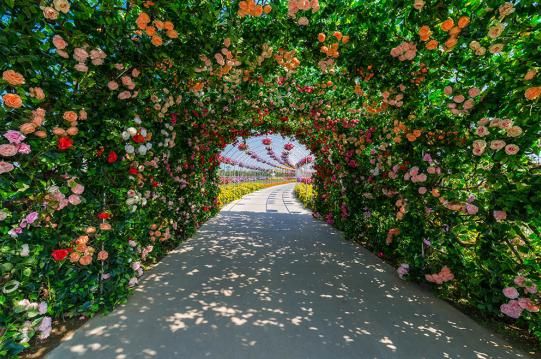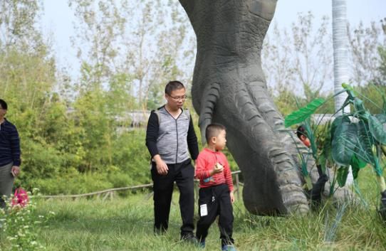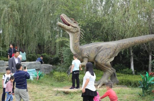 正式进入景区,花香四溢。那天正值花展,一路都是球花相伴,甚是好看。再往前,是很漂亮的盆栽,我们在此留影之后,决定走左边这条路。原来我们进入的是恐龙模型区。各种各样的恐龙,外貌、声音都惟妙惟肖,好像进入真正的侏罗纪世界。这里是孩子们的乐园,好奇的宝宝们走近它们,还以为是真的恐龙。一路前行,要穿过湖面上的索桥才能到对面。在上面有的人故意把桥弄的左右摇晃,胆小的姑娘们都扶着铁链不敢走了……