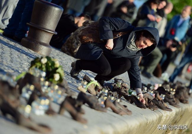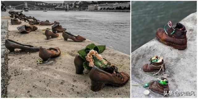 如果你有机会去匈牙利首都布达佩斯,一定会被一处“恐怖”的景点所震撼。美丽的多瑙河堤岸上,摆放着一双双各式各样的铁鞋,有男式有女式,还有儿童鞋,锈迹斑斑的铁鞋中或是蜡烛瓶,或是干枯的鲜花。