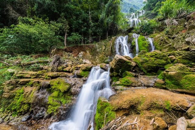 百杖潭瀑布,以其壮观的景象吸引了无数游客。瀑布从高处倾泻而下,如同一条银链挂在山间,水声轰鸣,震耳欲聋。站在瀑布前,感受那扑面而来的水汽,你是否会感叹大自然的鬼斧神工?