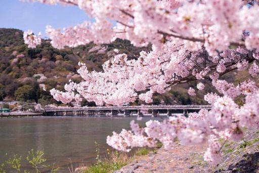 岚山,京都著名风景区,位于京都西郊,海拔382米,以春之樱花和秋之枫叶而闻名,有“京都第一名胜”之美誉。烂漫的樱花开在春天的岚山,京都这座千年的古城在樱花的装点下显得迷离而温柔。岚山的苍松古柏生长在波平如镜的大堰河两岸,身着和服的少女迈着碎步,木屐声嗒嗒作响。这一切就像一幅清丽的画,更像一首婉约的歌山上松柏茂密,山下是大片的竹林。坐落在岚山山麓的龟田公园还立有周恩来总理的诗碑。