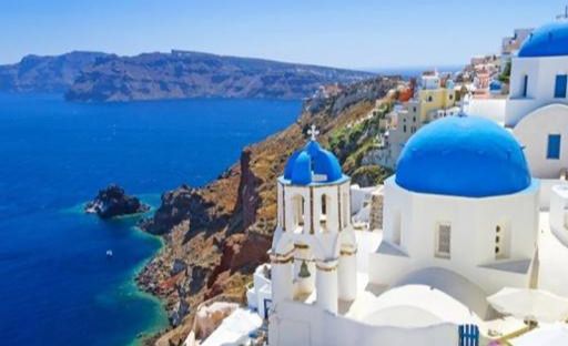有一种浪漫叫做在爱琴海看海,在圣托里尼看日落。爱琴海是希腊半岛东部的一个蓝色系海洋,南抵圣托里尼,属地中海的一部分。是闻名全球的浪漫之地。蓝顶教堂为圣托里尼明信片式的地标建筑,也是游人必打卡的景点。伊亚镇被建立在海边的悬崖上,是圣托里尼岛第二大镇,这里有全世界最美的日落。