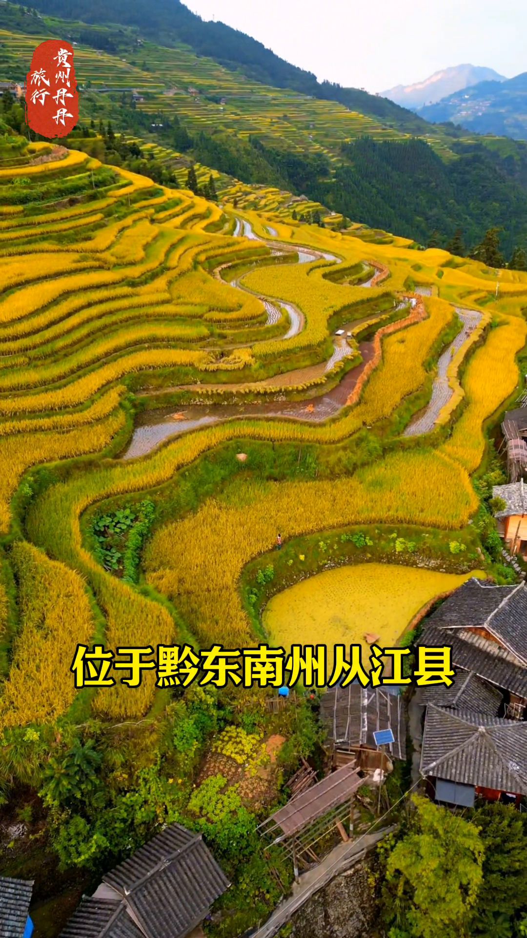 ·13.加榜梯田。位于黔东南州从江县,是中国最美的梯田之一。梯田中散落着苗乡特有的吊脚楼,是苗族人世世代代留下的杰作。