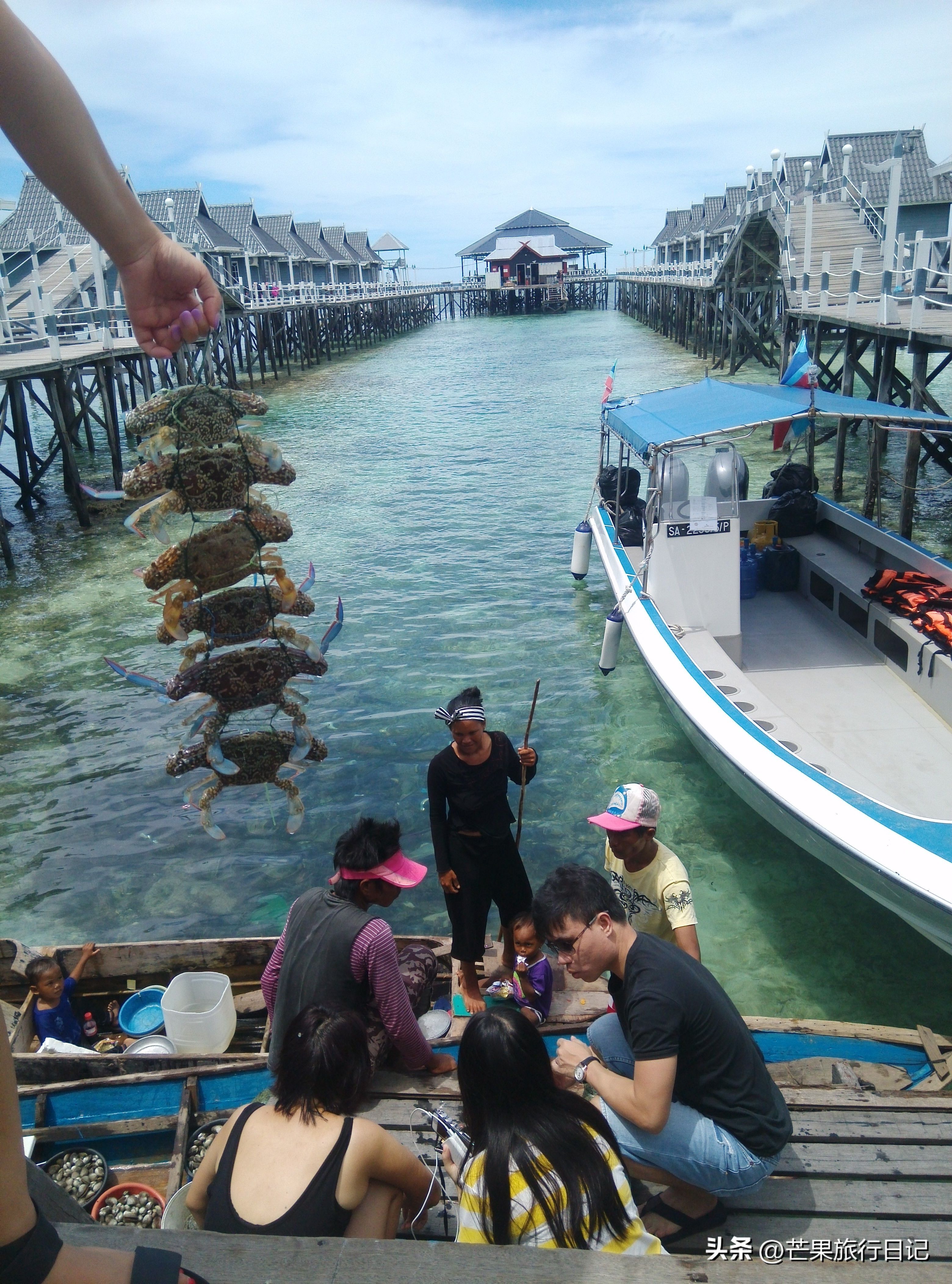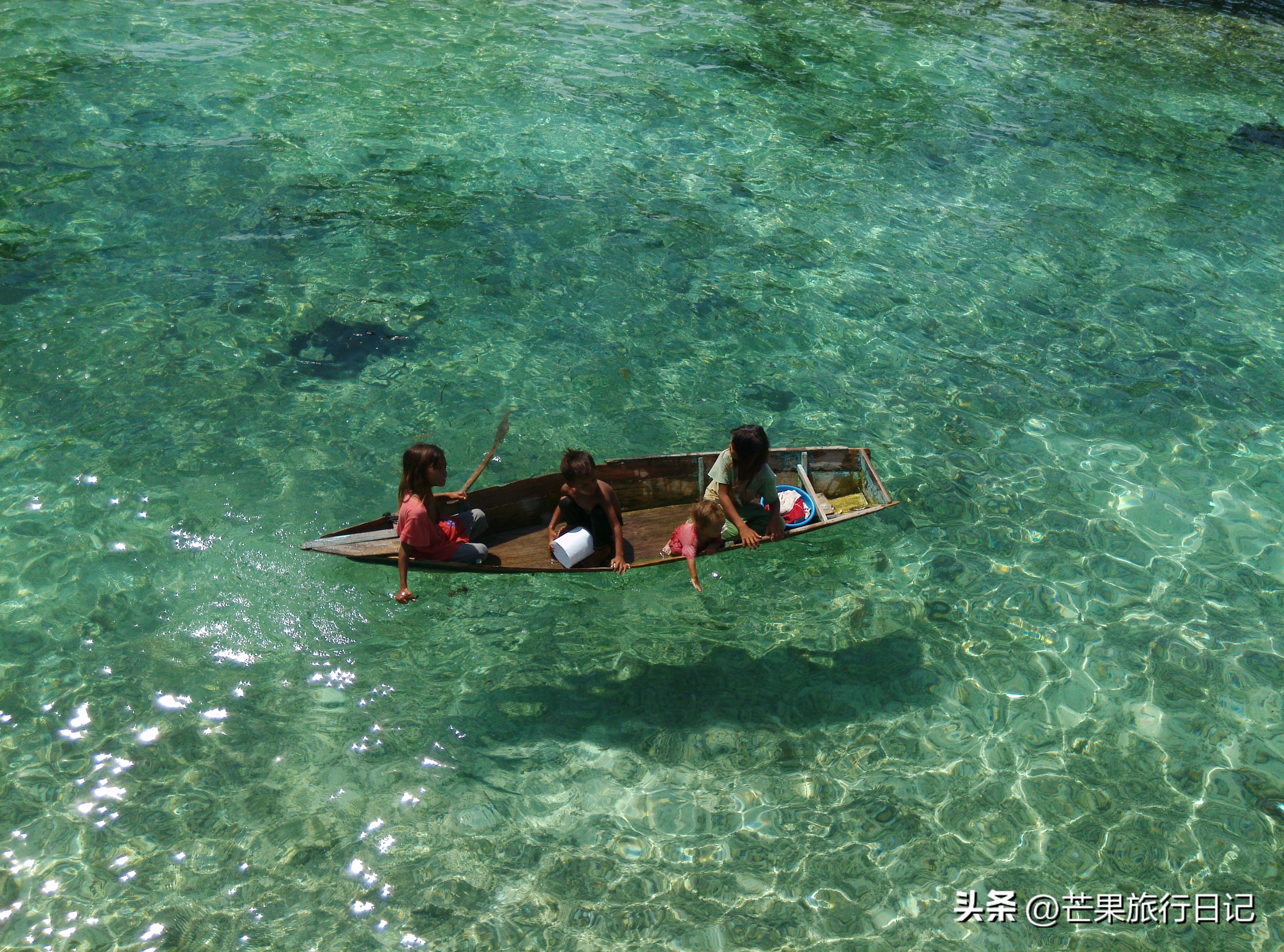 木屋就建在海上,像宫崎骏的动画般梦幻,鱼群在脚下游来游去,海水清澈得可见海星,经常有巴瑶族女人和孩子划着小船从木屋前经过,船里是他们刚打捞的海鲜,便宜又新鲜。