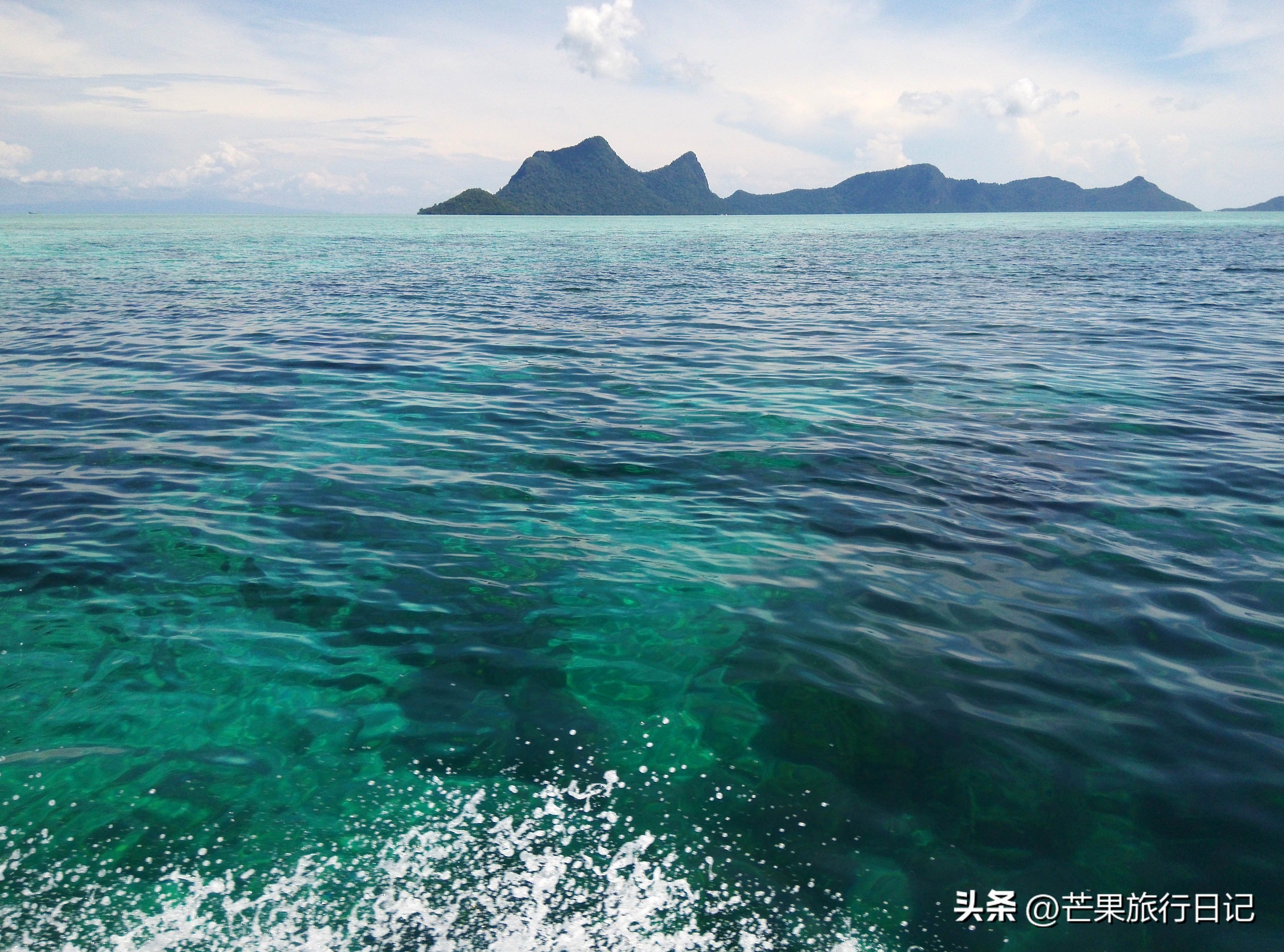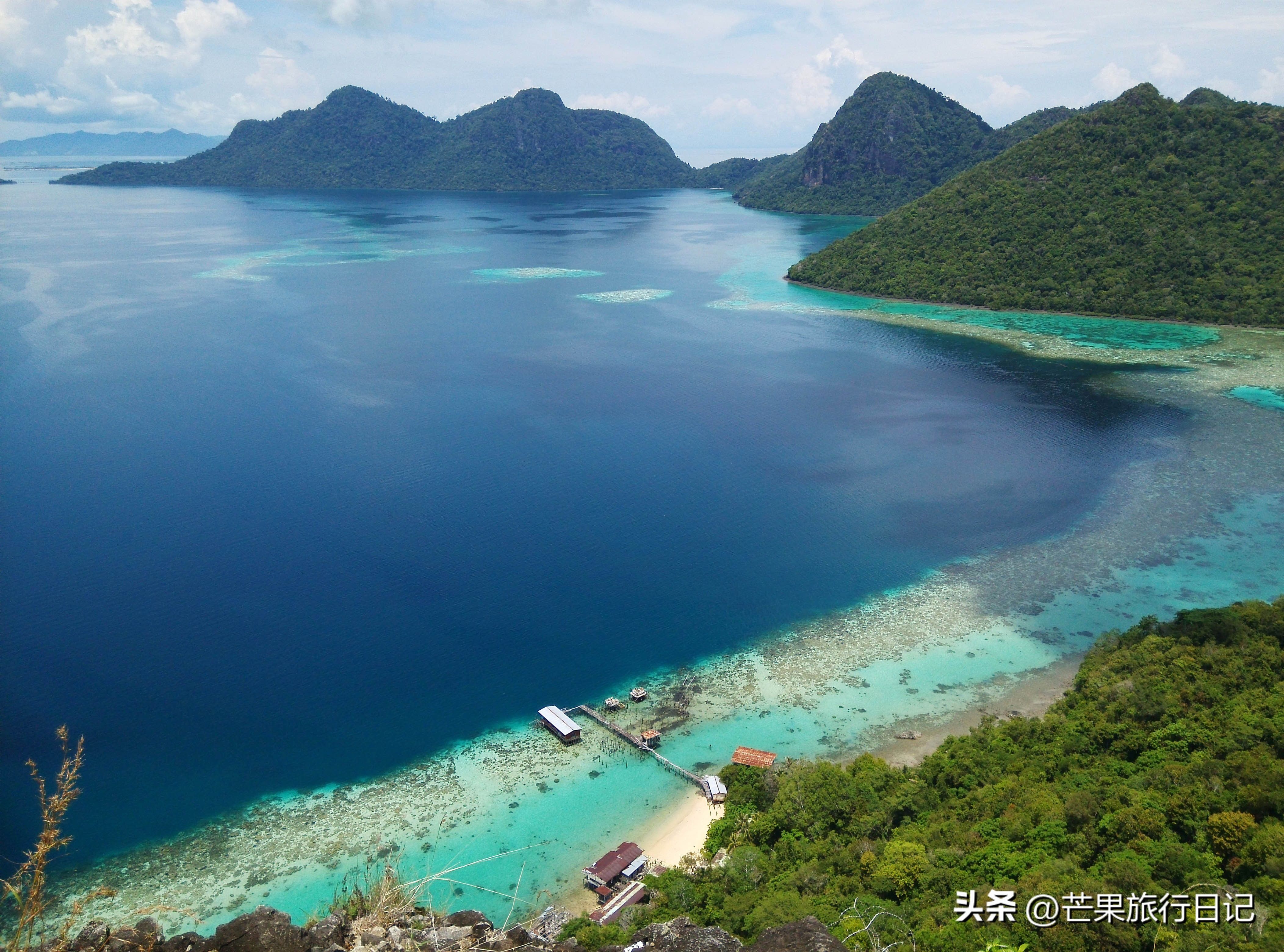 仙本那的军舰岛和珍珠岛海景绝美,海水像发光的蓝宝石,随手拍都很美,珍珠岛要爬到山顶可看全景,蓝天下的海面呈现出深蓝浅蓝浅绿等多种颜色,美得像假的一样。